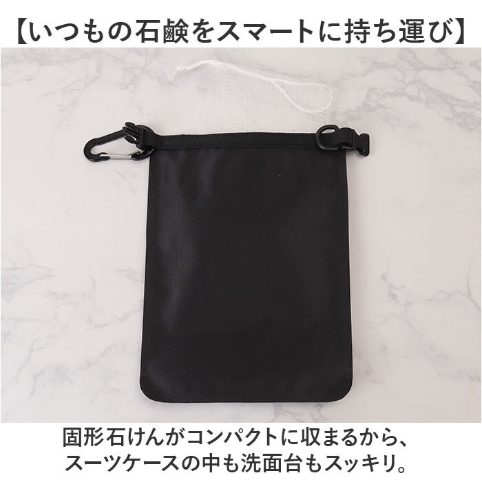 | 商品説明 | ・・【石けん派の旅支度にぴったり♪】 ・お気に入りの石けんとどこへでも一緒に。「石けん収納袋 2個セット」が登場。 ・【いつもの石鹸をスマートに持ち運び】 ・固形石けんがコンパクトに収まるから、スーツケースの中も洗面台もスッキリ。 ・【音がしないからストレスゼロ】 ・プラスチック製のケースと違い、音が気にならないやわらかな素材。移動中も静かで快適。 ・【旅行やスパにぴったりの軽さ】 ・液体と違って軽くて漏れる心配がないから飛行機にも安心。荷物がかさばらず準備もラクラク。 ・【泡立てネットとセットで便利】 ・泡立てネットごと袋にIN。使った後は折りたたんでバックルでしっかり密閉。 ・【撥水素材&カラビナ付き】 ・濡れてもすぐ拭ける撥水生地。スパバッグやリュックにパチッと装着OK。 ・【いつもの石けんで肌ストレスゼロ】 ・いつもの石けんを旅先でも。2個セットだから使い分けやシェアにもぴったり♪ |