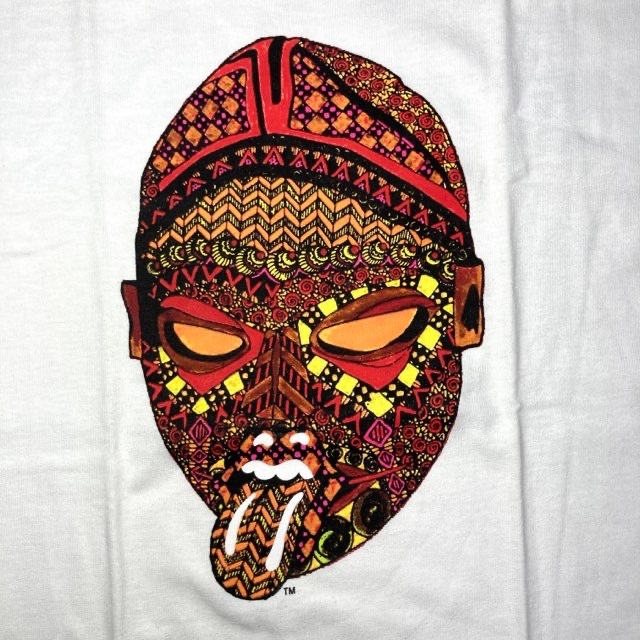 | サイケデリックなフェイスアートがインパクトあるローリングストーンズのロックTシャツです。 |