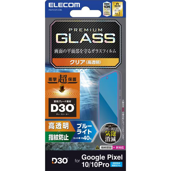 | 製品 | Google Pixel 10/10 Pro用画面保護ガラスフィルム D3O Lab社製特殊素材D3O採用・ブルーライトカット |
