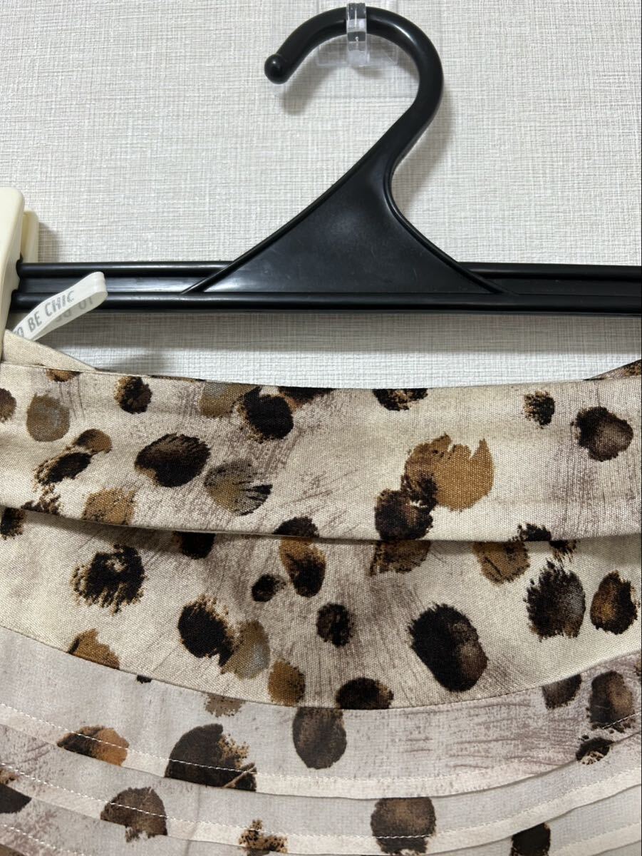 動物柄のフレアスカート、リボン付きでスタイリッシュ。