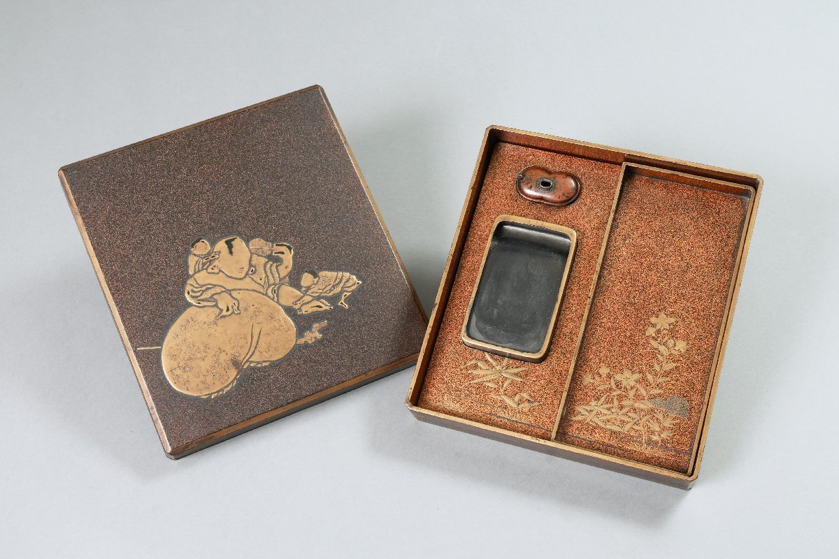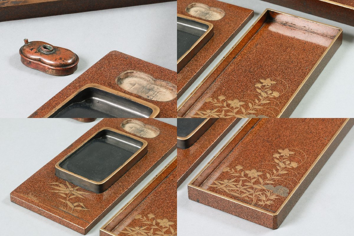 | ・時代漆美術 光琳蒔絵布袋之図 秋草蒔絵 硯箱 時代箱 /漆器 蒔絵美術 書道具 |
