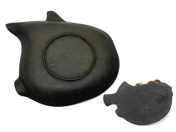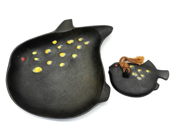 | 【M292】美品 金属製 嘉山 フグ/ふぐ 小皿?と重し? 2点セット 作家物 | ||