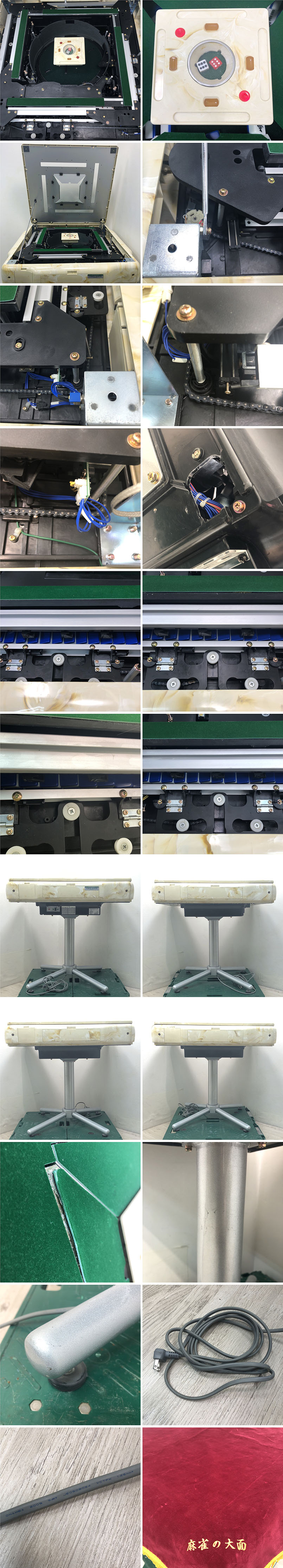 こちらはAMOS MATER アモスマーテル 家庭用全自動麻雀卓 TA-1MTです。 中古現状品です。 立卓タイプと座卓タイプでお好みで設置できます。 ![]() 【コンディションについて】 スレ、小傷、汚れなどの使用感があります。 動作確認について、10回中1~2回ほどエラー番号6が表示されます。 取扱説明書の対処法を行いリセットしていただくと改善する状況です。 動作チェックの様子は、動画でも撮影しておりますので併せてご確認ください。 動作チェック動画 動作OK ver 動作チェック動画 エラー ver 外観の上では、年式の割に程度は良好かと思われます。 ただし、コード年式2009年と比較的年数が経過している点と、 先に述べましたように今のところ使用できるとは言えエラーが頻発しますので、 基本的には現状品での販売となりますので、ご理解のある方にお譲りできればと思います。 詳細につきましては下記画像も合わせてご参照ください。 ![]() 【配送・搬入についてのご注意】 必ず搬入経路を下さい。 原則として組み立てた状態での発送となります。 搬入口が狭く通らないお届け先の場合は、脚を外した状態でお送り致しますので、 その場合はご落札時に必ずご指定下さい。 組み立てはご落札者様にてお願い致します。(ドライバーとスパナが必要です) 配線のあるお品の為、運送会社による分解・組み立ては対応不可となりますので予めご了承下さい。 再良市場の他のお品物はこちらから!