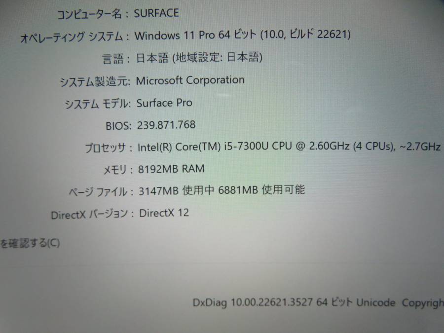 ★ 型 番 : SURFACE PRO 1796