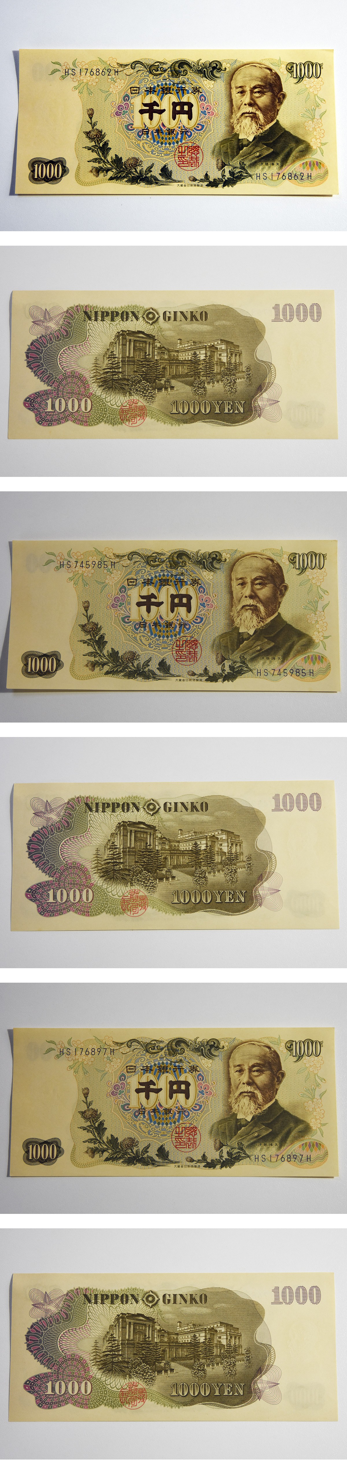 旧1000円紙幣 伊藤博文 黒色 昭和38年(1963) ~ 昭和61年(1986)発行 3枚