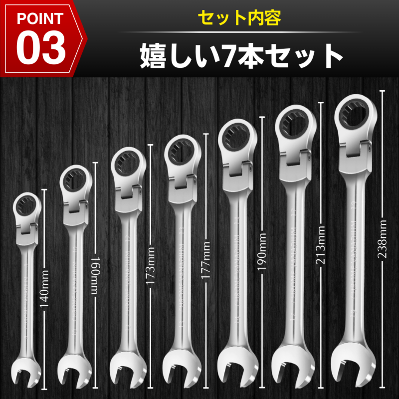【商品説明】 ■使用頻度の高いサイズを7本セットにした首振りタイプのラチェットギヤレンチです。 ■角ボルト、ナットの締付け、緩め作業、設備やメンテナンスや組立、建築などに幅広く使えるコンビネーションレンチです。 ■バイクや車の修理・整備メンテナンスに活躍する便利な工具です。 DIYなど、一家に1セットあると重宝します。 ■作業効率が格段にアップします! 自動車のエンジンルームなど狭い部分でもスムーズに作業が可能! ■180度の首振りタイプで、様々な角度のボルトもしっかり締め付けます。 ■72ギアのラチェットで細かい締め付けに対応し、その都度レンチを外さなくても狭い場所でもスムーズに作業ができるので作業効率が上がります。 ■クロムバナジウム鋼で丈夫で長持ち! 高品質のクロムバナジウム鋼で高硬度、耐久性が抜群です。 ■鏡面仕上げで見た目もよく、錆にくいので長くお使いいただけます。 【商品詳細】 ギア数 :72山 首振角度:0~180度 内 容:7本セット サイズ :8、10、12、13、14、17、19mm 素材:クロムバナジウム鋼 【お支払い方法】 ・!かんたん決済 【発送について】 ・おてがる配送(日本郵便)で発送します 発送日 :お支払い後1~3日以内 到着目安:発送後2~5日程度 ※商品はポストに投函されます ※遠方の方はもう少しかかる場合もございます ◎注意事項 ・落札後は期限内にお支払いください ・商品画像の転載や説明文のコピーはお止め下さい ◎初期不良は対応しますので、何かあれば「評価前に」ご連絡下さい |