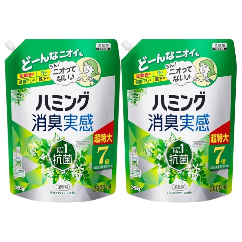 ハミング消臭実感 リフレッシュグリーン 詰替え用 2600ml 柔軟剤 大容量 つめかえ 詰め替えつめこみ洗いも、部屋干しも、無敵消臭! ●ハミング内No.1抗菌*1 *1抗菌できる菌が複数あること。一部の菌は数回の洗たく。すべての菌の増殖を抑えるわけではありません。 ●アタックの消臭技術採用 ●ニオイ戻りもブロック(着用中の汗臭、濡れ戻り臭) ●洗たく槽も防カビ(すべてのカビの増殖を抑えるわけではありません) ●花粉ブロック(静電気を防ぐ) ●リフレッシュグリーンの香り| 出价者 | 信用 | 价格 | 时间 |
