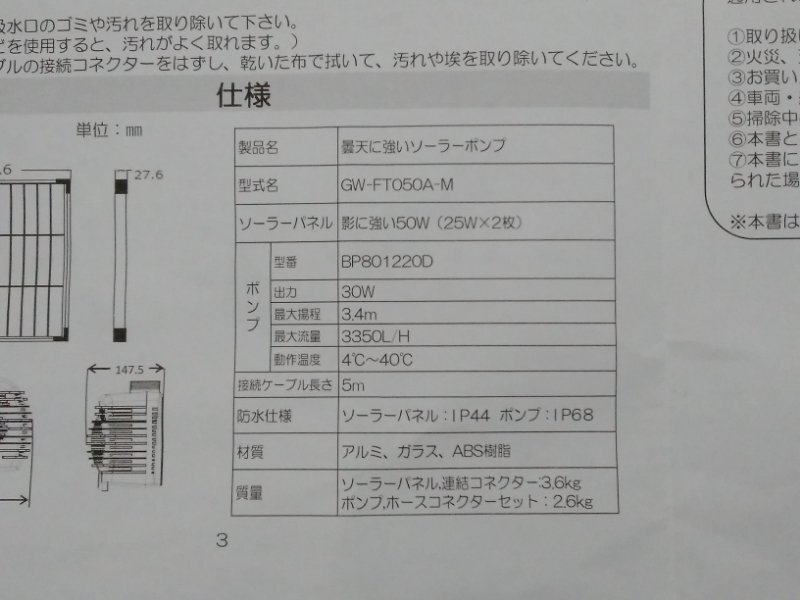GWSOLAR 曇天に強いソーラーポンプ GW-FT150A-M