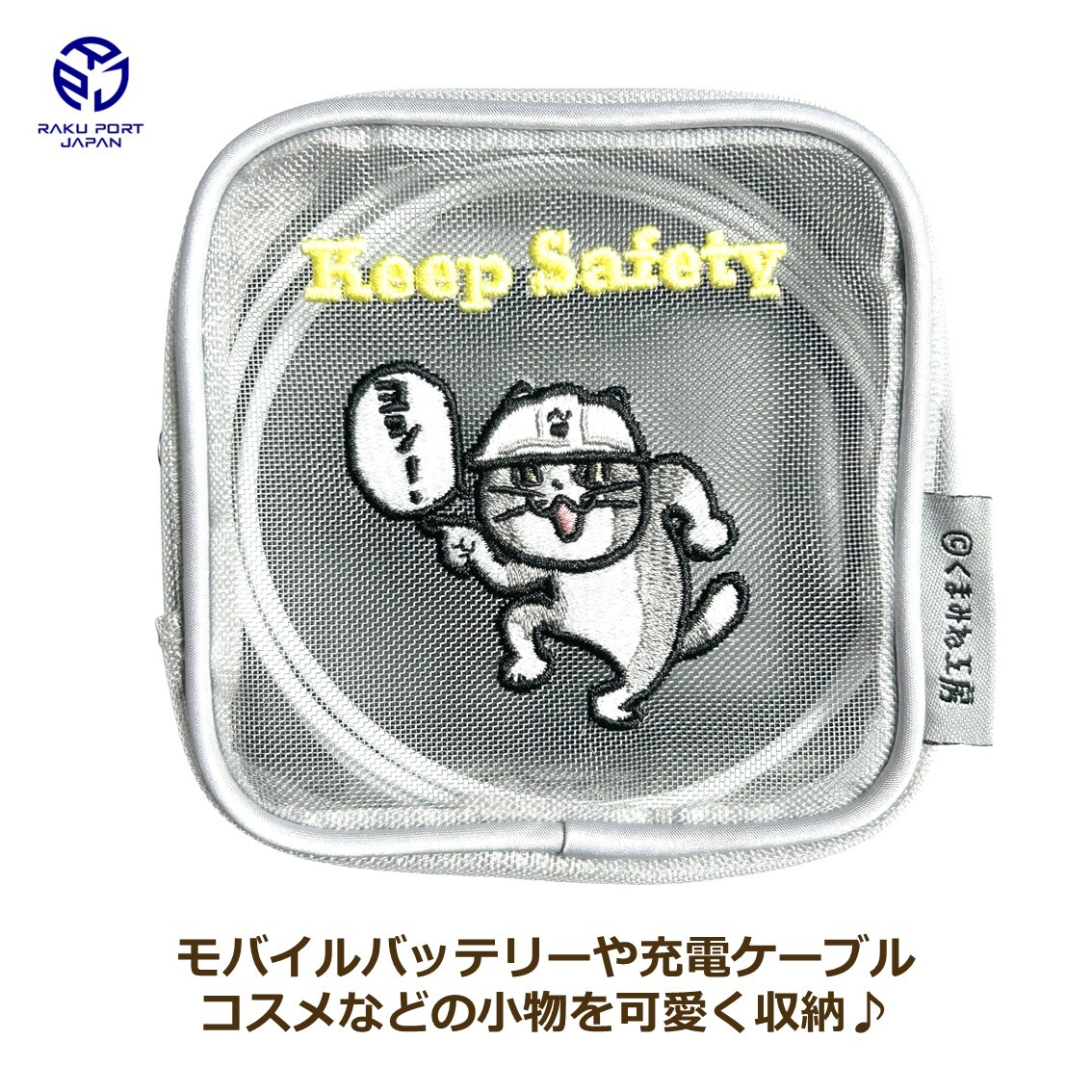 ヨシ! 仕事猫が、あなたの小物をしっかりガード。安全第一ヘルメット姿でおなじみの人気キャラクター・仕事猫がデザインされた、可愛くて実用的なメッシュポーチ。軽量&中身が見やすいから、文具・アクセサリー・充電ケーブルなどの整理にぴったり。毎日の持ち物チェックも、このポーチと一緒なら楽しくなります♪サイズ:横100mm×縦100mm×マチ40mm中国製 素材:ナイロン100%ヨシ! 仕事猫が、あなたの小物をしっかりガード。安全第一ヘルメット姿でおなじみの人気キャラクター・仕事猫がデザインされた、可愛くて実用的なメッシュポーチ。軽量&中身が見やすいから、文具・アクセサリー・充電ケーブルなどの整理にぴったり。毎日の持ち物チェックも、このポーチと一緒なら楽しくなります♪幅:10cm高さ:10cm奥行き:4cmRAKU PORT JAPANオリジナルセットです。当店以外からのご購入は、異なるセットが届く場合がございますのでご注意ください。商品パッケージは予告なく変更する場合があります。同じ商品でも販売する時期によってパッケージが異なる場合がございますのでご了承ください。お使いのモニターなどによって色味が異なって見える場合がございます。仕事猫 現場猫 電話猫 ヨシ よし グッズ ステッカー ガチャ メッシュポーチ くまみね 刺繍 くまみね先生 熊峯 プレゼント ギフト メンズ レディース 大容量 小さめ キャンバス ブランド 縦長 横長 化粧 ポーチ バッグ お出かけ 丈夫 上部 長持ち しっかり 買い物 エコバッグ 再利用 どうして ハイテンション