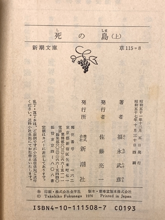 | 死の島 上巻 (新潮文庫 草 115H) 新潮社 福永 武彦 | ||||
