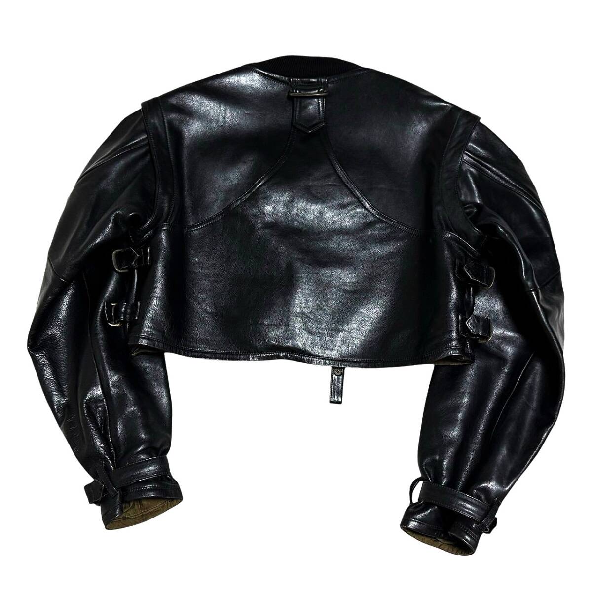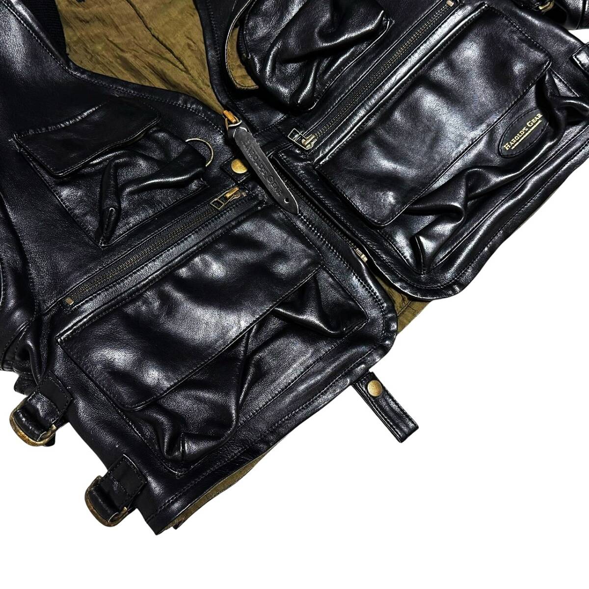 | 商品説明 | 【商品】 超希少! 美品 名作! ハロルズギア 極上カウレザー 2WAY ベリーショート ライダースジャケット ベスト F 黒 牛革 ブルゾン HAROLD’S GEAR 【商品説明】 HAROLD’S GEAR(ハロルズギア)のカウハイド レザー ベリーショート ライダース ジャケットになります。 (株)プランツの内タグが付属する国内正規品になります。 HAROLD’S GEARは1984年、ヴィンテージモーターサイクルウエアブランドとして産声を上げました。 卓越した機能美の追求を標榜し、誇り高き職人魂とともに、洗練された道具=”GEAR”を作り続けています。 確りとした肉厚感がありつつ、しなやかで艶も素晴らしい最上級の極上カウハイドレザー(牛革)が使用された高級感溢れる極上の一着。 最高級の極上カウハイドレザーで仕立てられており、とても身体に馴染みがよく吸い付くようなフィット感、肌触りを堪能して頂け、レザーアイテム特有の硬さがありませんのでストレス無く着用して頂けます。 特筆すべきポイントは何と言っても、ベリーショート丈のボディに施された大胆な配置のマルチポケット、Dカンとベルトストラップのアヴァンギャルドなデザイン。 肩から肘にかけてに大胆に施された大ぶりなパデッドデザインによる圧倒的な存在感と風格ある佇まいが秀逸。 袖部分はファスナーにては取り外しが可能ですので、ライダースベストとしてもお楽しみいただけます。 ハロルズギアらしい無駄を省いた美しいシルエットに仕立てられ、身頃の綺麗なウェストシェイプや立体的でタイトなアームホールは秀逸。 誰もが目を惹く斬新なデザインに仕立てられたハロルズギアの傑作モデルです。 スタイリッシュにもハードにもスタイリングが出来る万能デザイン&シルエットで幅広いコーディネートが楽しめる一着です。 フロントはジップアップ開閉、フロントにポケットが6つ、背面の襟下のベルトを外すと特大のバックポケット、袖口にアジャスターベルト、両サイド部分にアジャスターベルト、襟元はリブの仕様。 裏地には吸湿性に優れた滑りの良いナイロンを使用しておりますので、腕通し、着心地ともに抜群の一着です。 左裾にはブランドロゴ入りのオーバルレザーワッペン、ジップ引手にもブランドロゴ入りのレザー引手があしらわれており、ブランドをしっかりと主張した特徴的なデザインで、存在感のある着こなしを楽しめます。 ポケットも充実しており、機能性をしっかりと兼ね備えた「ライダースジャケット」に仕立てられています。 素材・デザイン・シルエットの全てにこだわり抜かれた、さすがハロルズギア!と唸らされるクオリティーの高い仕上がりとなっています。 素晴らしい艶と質感のブラックのオールレザー仕様、リッチ感溢れる素晴らしいライダースジャケットです。 防寒性、保温性にも優れており、インナーを調整することでオールシーズンに着用して頂けます。 極上カウハイドレザーによる重厚感、独特の艶による高級感、洗練されたデザイン性・シルエット・ディティールは一切妥協の無い完成度の高い仕上がりの一着ですので、ワンランク上のコーディネートが完成致します。 上質なデザインで末永く愛用していただける逸品。 ハロルズギアならではの拘りの作りと、高級感のある仕上がりの一着。 縫製や素材にこだわった、ハロルズギアの作品は滅多に流通しません。 定価では手の出難い非常に高価且つ、大変希少なアイテムになりますので、本物志向の方は是非この機会にご検討下さい! 【サイズ】 表記:FREE 肩幅:51㎝(肩縫い目間・直線) 身幅:57㎝(脇下・直線) 袖丈:63㎝(肩先~袖先) 着丈:45㎝(後襟下~裾先) (※多少の誤差はお許しください。) 【素材】 表地:牛革 胴裏地:ナイロン100% 【カラー】 ブラック 【コンディション】 使用感も少なく、まだまだご使用頂ける非常に状態の良い商品です。 これからも十分に着用頂けます。 ※画像を参考にして下さい。 ※状態の確認は慎重に行っていますが、商品によっては全てのダメージを抜粋して記載する事が難しいため、記載された情報(破損や汚損・他目立つダメージ等)以外に、細部の破損や汚損、欠品等の見落としがある場合がございます。 予めご了承くださいませ。 |