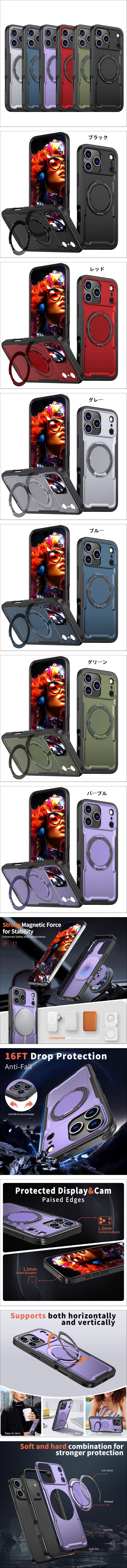 iPhone Air (6.6インチ) 用 ケース 磁気吸着 指リング スタンド付き 衝撃吸収 防 保護カバー | |||
