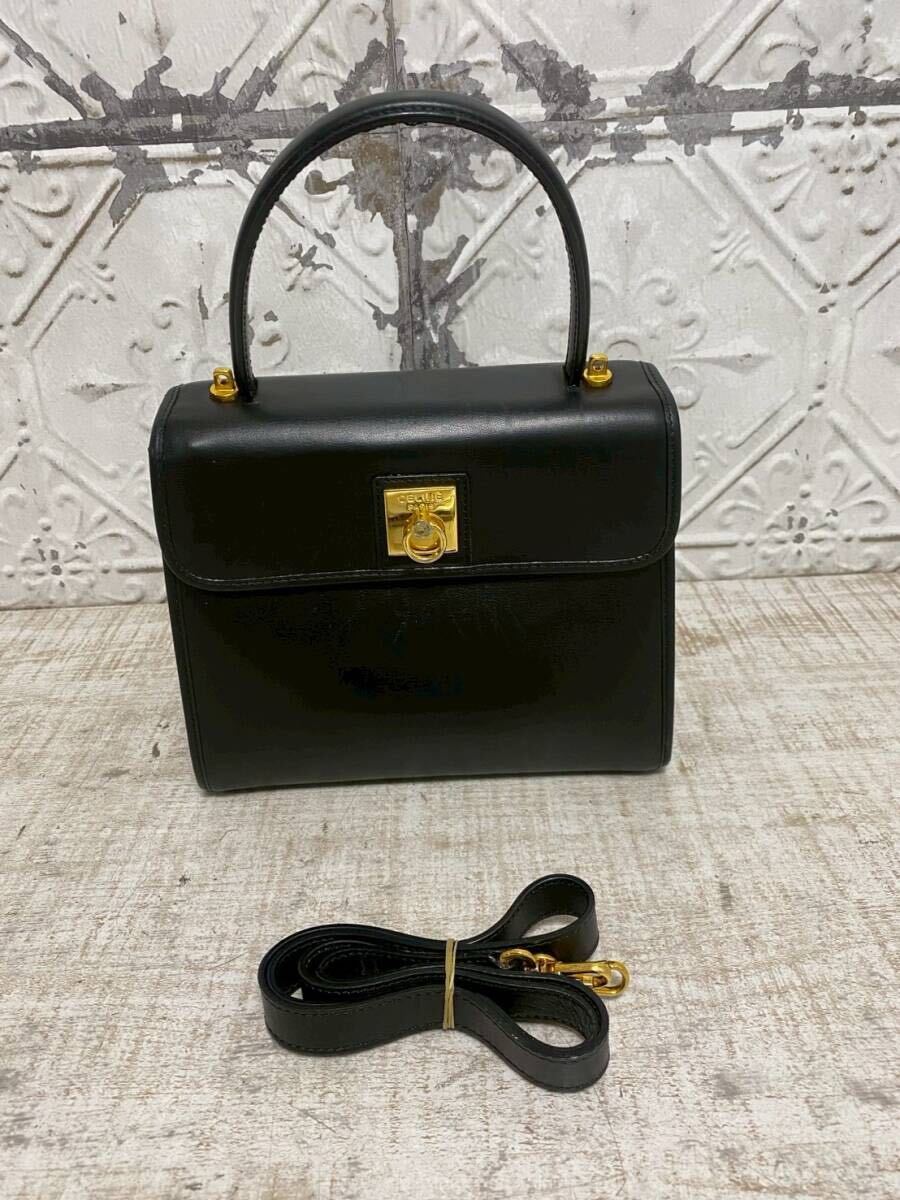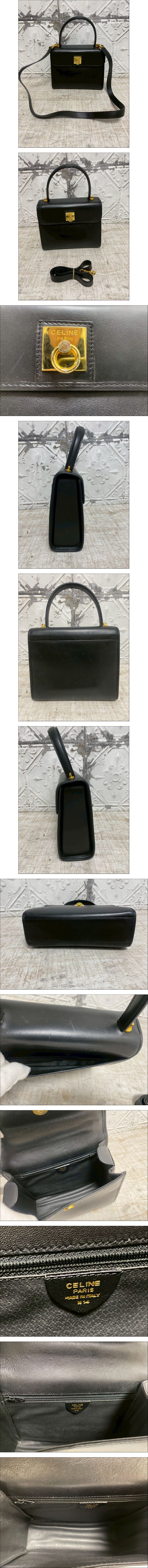 | ★a-198 CELINE セリーヌ ハンドバッグ バッグ レザー ブラック ゴールド金具 レディース ファッション コレクション ストラップ付 | |||