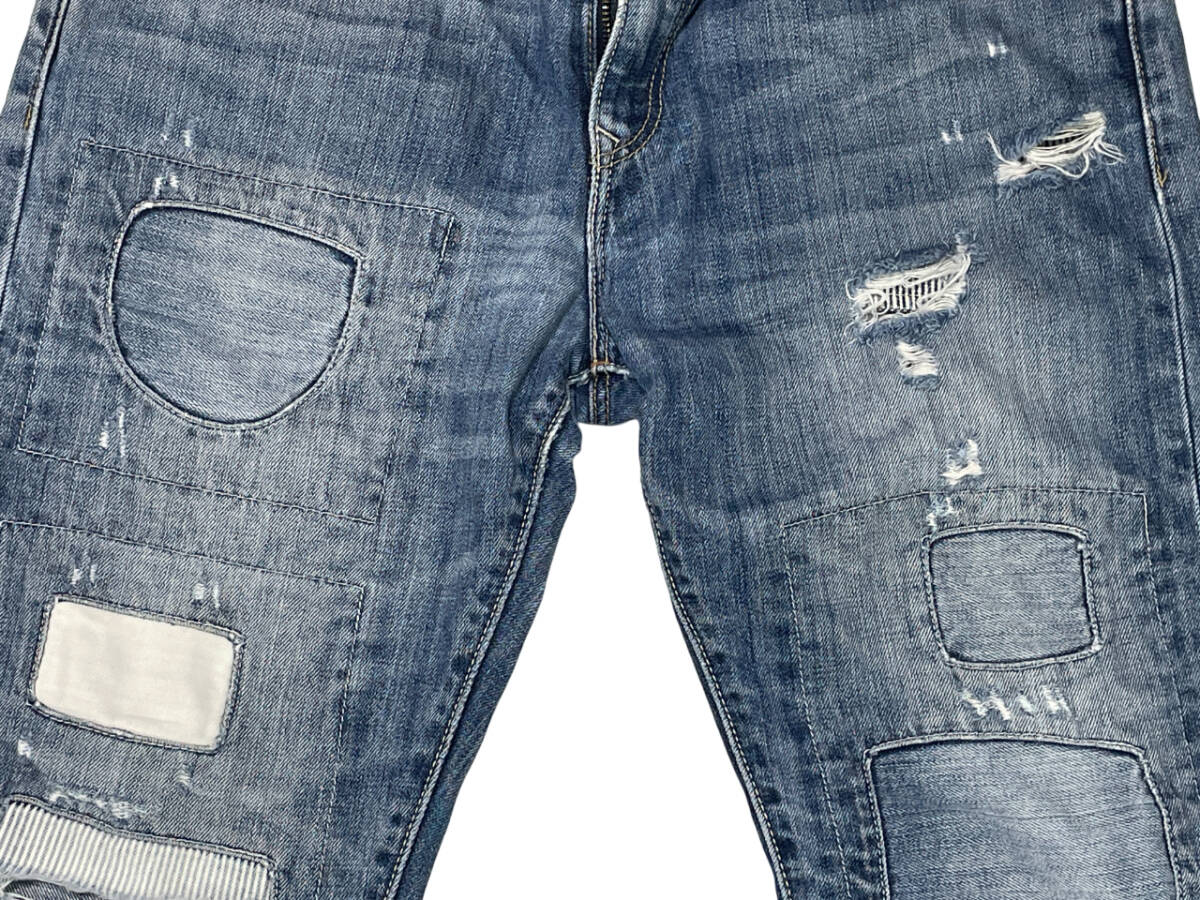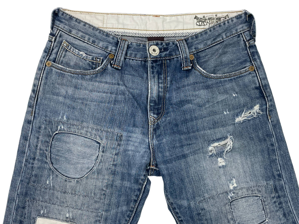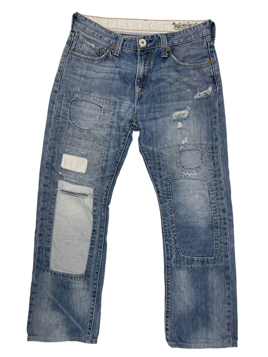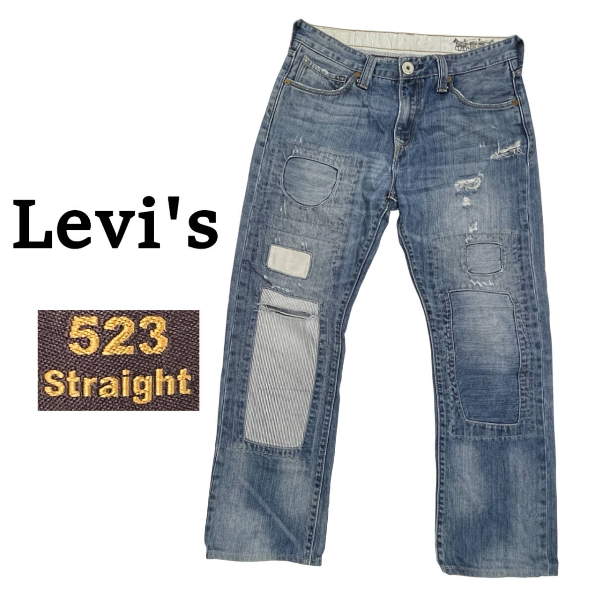 | ブランド:リーバイス カラー :インディゴ 状 態 :USED Levis 523 Straight デニムパンツ です。 パッチワークにダメージ加工 、リペア加工が施されたカッコイイデニムです。 タグが外されておりますのでサイズは実寸で表記しております。 状態が良いジーンズです。お探しの方お勧めです。 ■サイズ:製品表記 実寸W32相当 ■サイズ:実寸(平置き) ウエスト 41.0cm (×2=約82cm) W32相当 股下 71.0cm 股上 27.0cm もも幅 30.5cm すそ幅 21.5cm | ||
