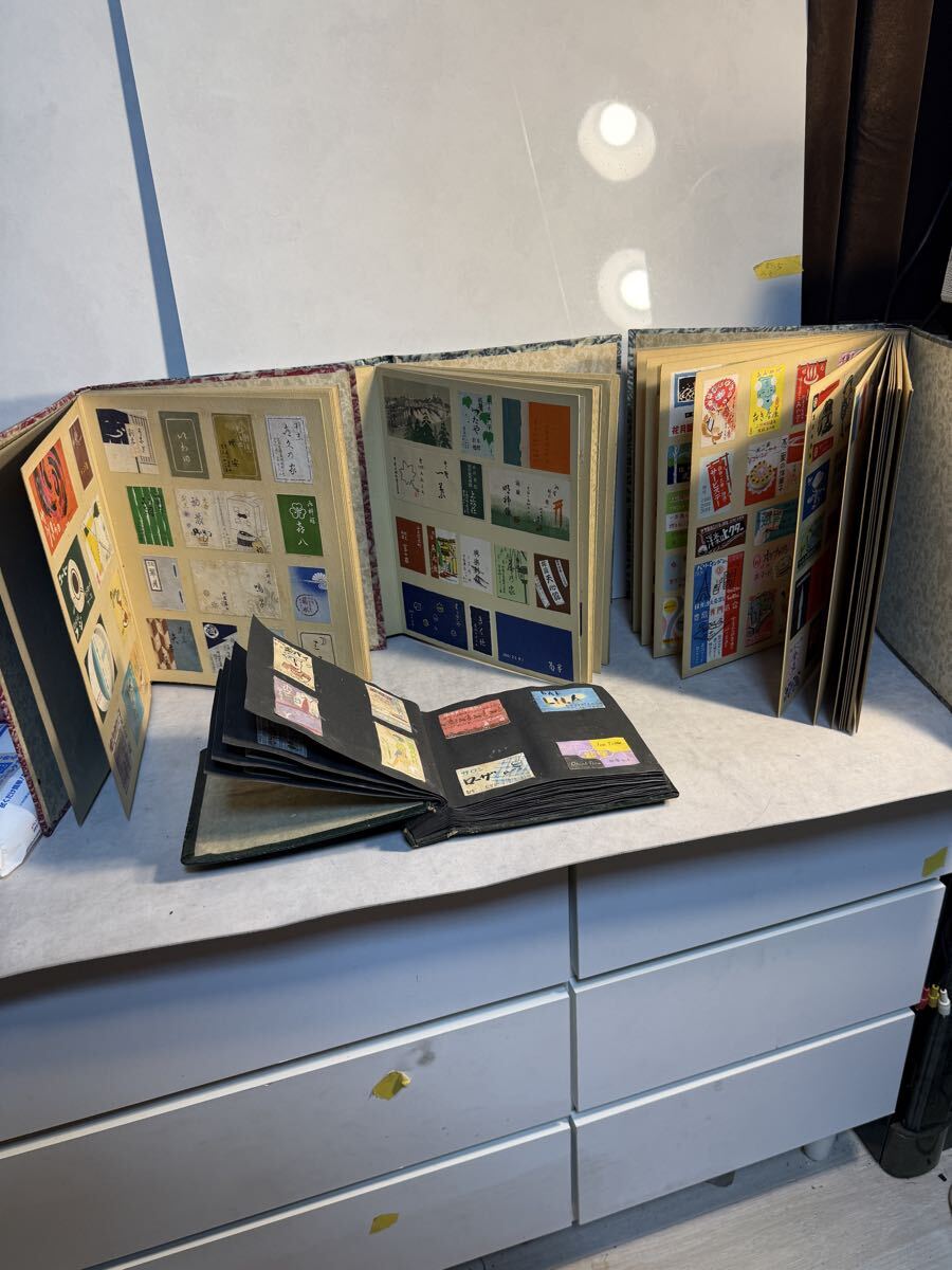 昭和30〜50年代頃に個人収集家によってまとめられた、商業ラベル・マッチラベル・広告紙片などを貼り込んだスクラップアルバムです。全国の喫茶店、旅館、料亭、百貨店、文具店、食品メーカー、観光地など、当時の店舗で実際に配布されていた小型ラベルが整然と貼り込まれています。印刷や色使い、書体、レイアウトからは昭和期特有の商業デザインの美しさが感じられ、今では失われた時代の広告文化をそのまま記録した資料的価値の高いコレクションです。| 出价者 | 信用 | 价格 | 时间 |