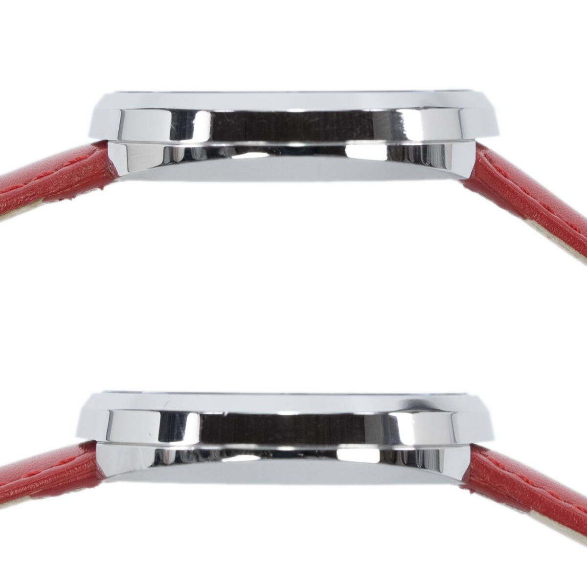 鮮やかなレッドのストラップが、手元をドラマティックに演出する逸品でございます。