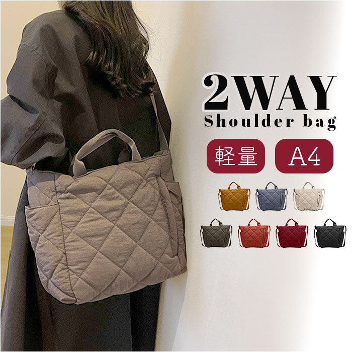 | 商品説明 | ・・【毎日のお出かけに】 ・ふっくらとしたキルティングがおしゃれなショルダーバッグ。 ・【持ち方選べる2WAYタイプ】 ・トートとショルダーの切り替えでシーンを選ばない便利さ◎ ・【たっぷり収納】 ・A4サイズがすっぽり。お出かけに必要なものがひとまとめ! ・【サクッと取り出せて迷子知らず】 ・合計4つのポケットを配置。バッグの中で探す手間が不要。 ・【軽やかな使い心地】 ・毎日持ち歩いても負担にならない軽量設計♪ ・【調節可能なショルダーベルト】 ・ショルダーベルトの長さを調節して、肩掛けや斜め掛けスタイル。 ・【選べる豊富な色】 ・好みやコーディネートに合わせて選べるカラー展開〇 |