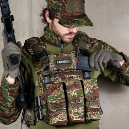 MOLLEへ水平に取り付けられ、左右どちら側にも装着可能。機動性と携行性のバランスに優れています。