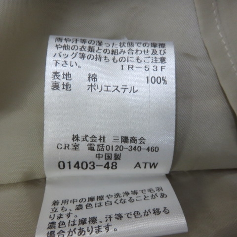 | 商品説明 | ご覧いただきありがとうございます。 ◆この商品は弊社店頭でも併売しております。◆ ◆そのため、商品が売り切れてしまう場合もございます。◆ ◆ご入金確認後、発送までに少々お時間を頂く場合があります。何卒ご了承ください。◆ ■サイズ:38 ■着丈:約88cm(肩から裾までを採寸) ■身幅:約44cm ※タグ表記と素材については写真にてご確認下さい。 ※全て平置き採寸。多少の誤差はあるかもしれません。 ご理解の程ご検討よろしくお願いいたします。 商品状態については、下記状態ランクを参考になさって下さい。 ◎ 状態ランク :B ※状態補足説明:使用感多少有り/表面毛羽立ち若干/小さな引っ掛け箇所あり(写真8参照) ご理解頂ける方のみご入札下さい。 <状態ランク一覧> 【S】 新品同様の状態で買い取った商品 【A】 わずかな浅いキズ、汚れはあるが大変綺麗な状態 【B】 多少の汚れ、キズがあり少し使用感の感じられる状態 【C】 目立った汚れ、キズのある状態 ※光加減、パソコンの環境などの都合で実際の色と多少異なることがあります。 ※写っている商品が全てとなります。説明文に無い小物は出品物に含まれませんのでご了承下さい。 ※折りたたんで保管致しますので、多少の折りがあるかもしれません。ご了承下さい。 ◎中古品ですので、美品や完品をお求めの方、細かいところが気になる方はご入札をお控えください。 |