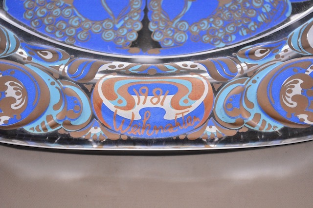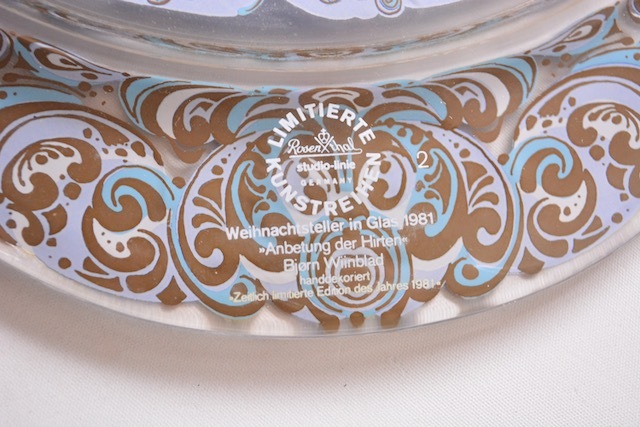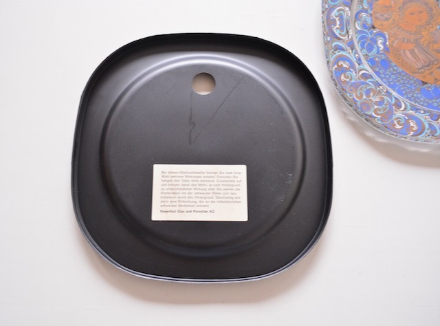 [発送方法/送料は下の方に記載しております。] 1976年から1981年までの6年間に毎年作られた、デンマークのデザイナー、ビヨン・ヴィンブラッドによる1981年のガラス製プレート。 キリストの誕生を知らせる天使と、その知らせを聞いた羊飼いたちが描かれています 鮮やかなブルーにゴールドを多用したとても豪華な目を惹く美しいプレートで、ガラスの縁はデザインに合わせてエンボス加工されています。 裏に壁飾り用のフックがありますが、とても重厚なガラスですのでスタンドで飾る方がよろしいかと思います。 サイズ:29×29cm位 (サイズについて) 実寸は平置きにて測りました。若干の誤差はご了承下さい。 カラー: (画像の色ついて) PC・モバイル環境によって、また個々の色に関する認識にも個人差があります。 色表現は言葉でも写真撮影でもとても難しく、実際のお色と全く同じようには表現するには限界がありますことをご了承下さい。 状 態: 経年による埃っぽさがあります。 当時の新品時の状態と比較ができませんが、多少くすみがあるのでは、と思います。 目立つキズやひび、チップなど決定的なダメージはありません。 外箱は画像のようにかなりの劣化があります。 * 気づいた点があれば記載させていただいておりますが、中古状態(ダメージ、匂い等々)に対する判断は個々に違います。USEDをご理解の上でご検討ください。 |