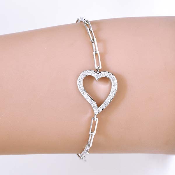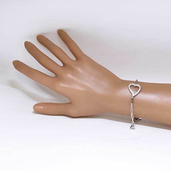 オープンハートにダイヤをセットした18金ホワイトゴールド製のブレスレット。| 商品詳細 | |||||||||||||||||||||||||||||||||||||