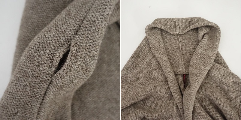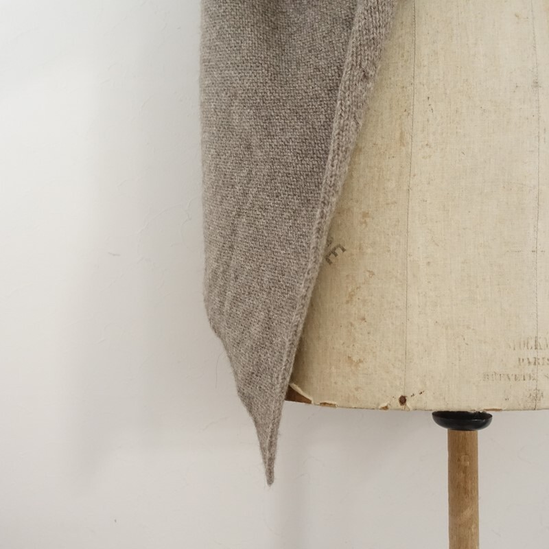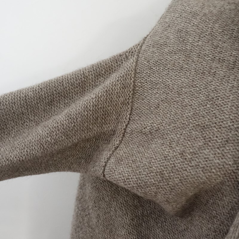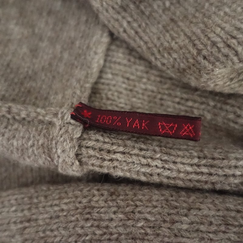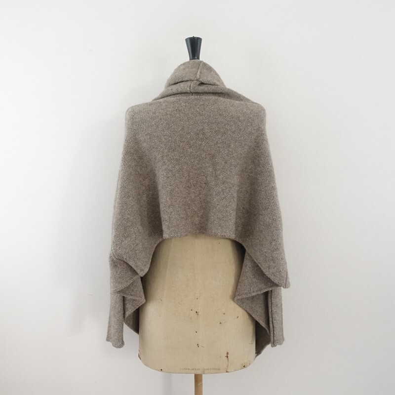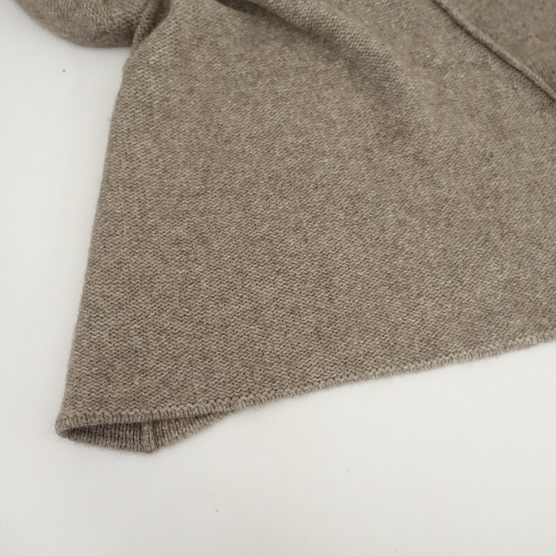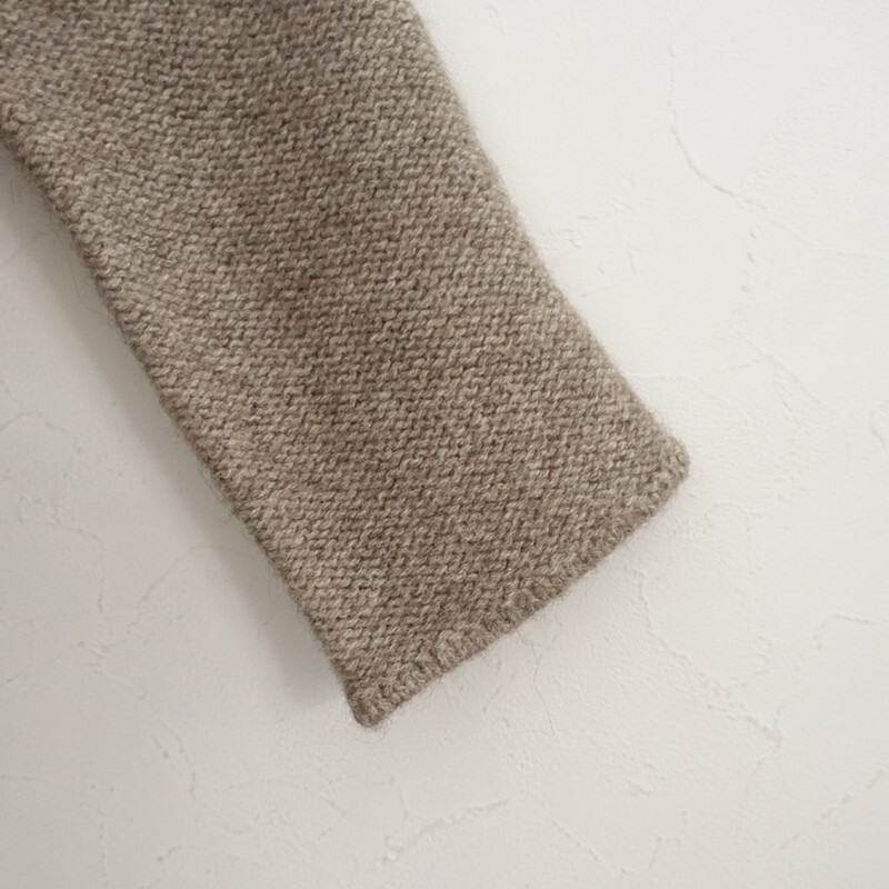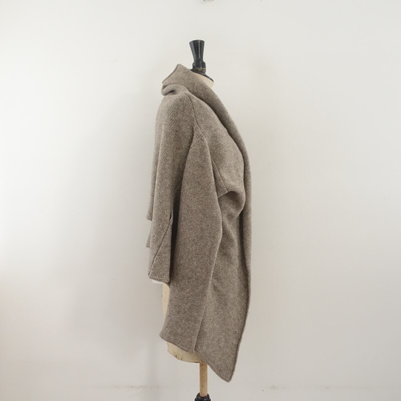 | DANIELA GREGISのヤクニットカーディガンです。カラーはミックスグレーベージュで、粗目のヤクニット地です。フロントオープンデザインで、両サイドにブランドの特徴でもある5cmほどのホールがございます。 |