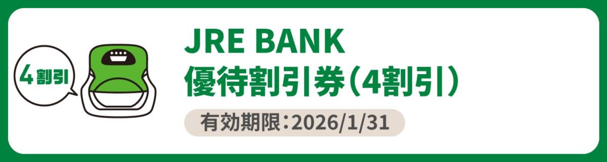 JRE BANK 4割引優待割引券です。| 出价者 | 信用 | 价格 | 时间 |