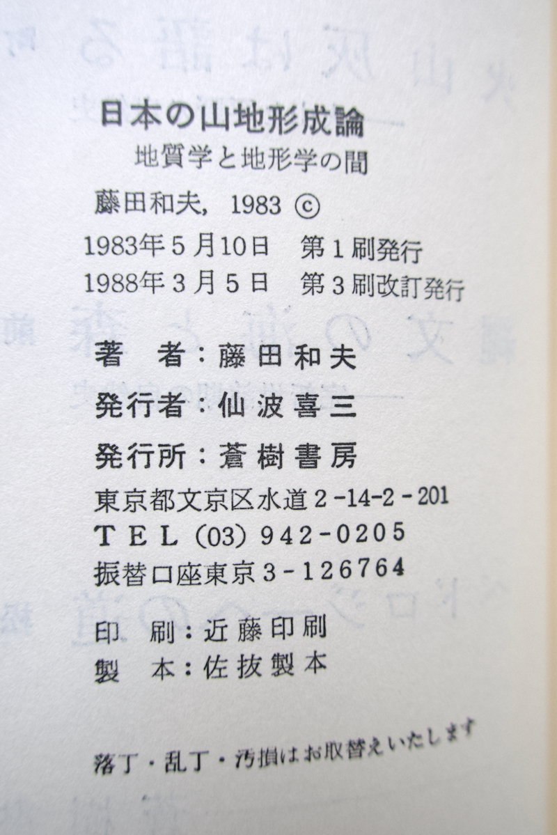 | 日本の山地形成論 地質学と地形学の間 (蒼樹書房) 藤田和夫 | |