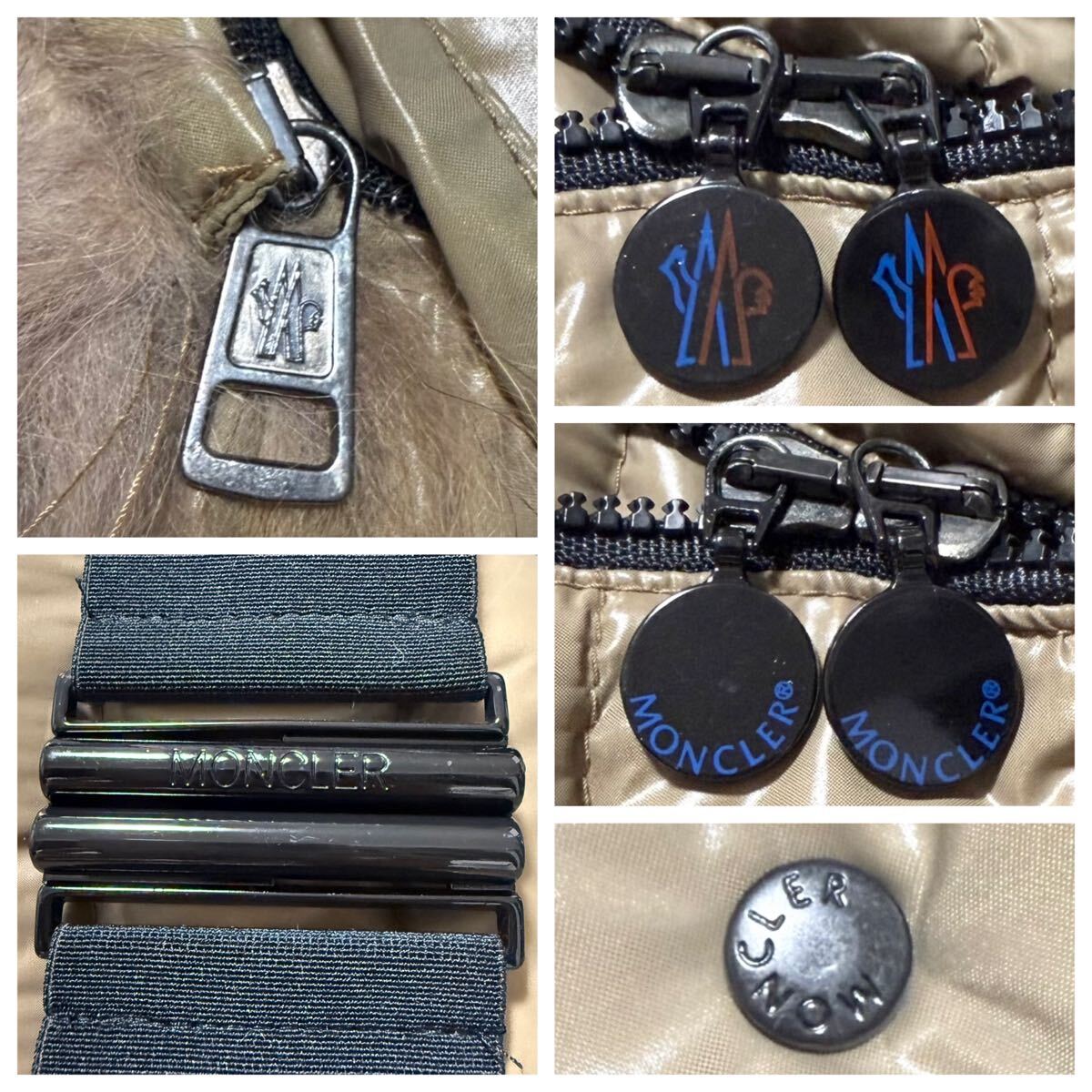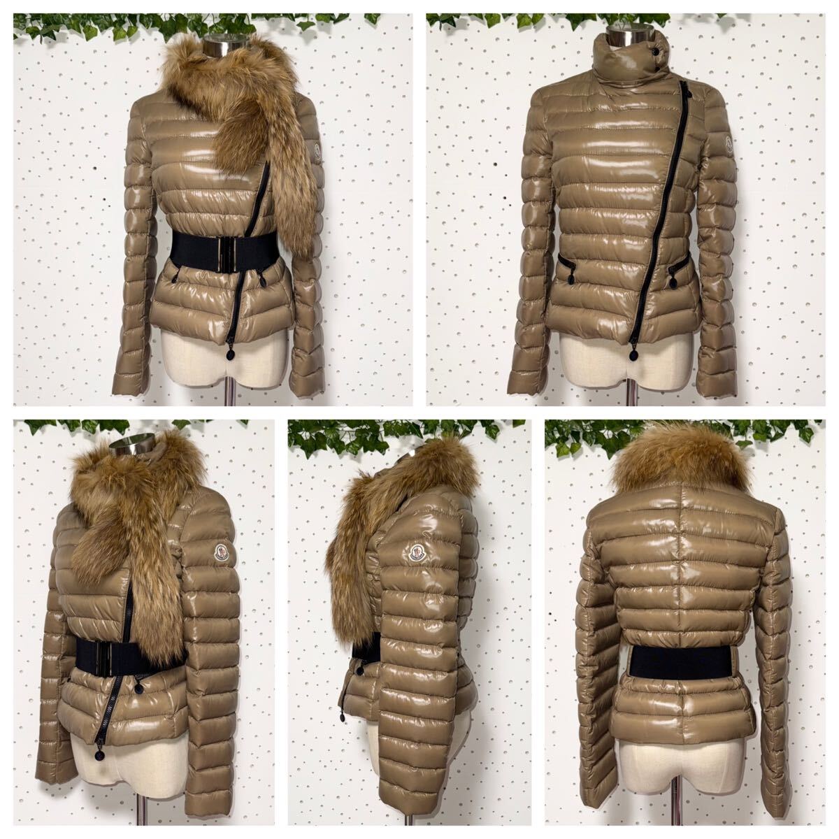 | 本物 美品 モンクレール ファー付 ベルト付 ナイロン ダウン ジャケット 0 ライトブラウン系 光沢ベージュ系 ダブルジップ MONCLER | ||||