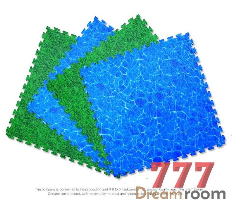 100cm 大判 さざ波 クッションマット 16枚SET ジョイントマット 青 海 セーフティーマット プレイルーム 子供 滑り止め 防音 衝撃吸収