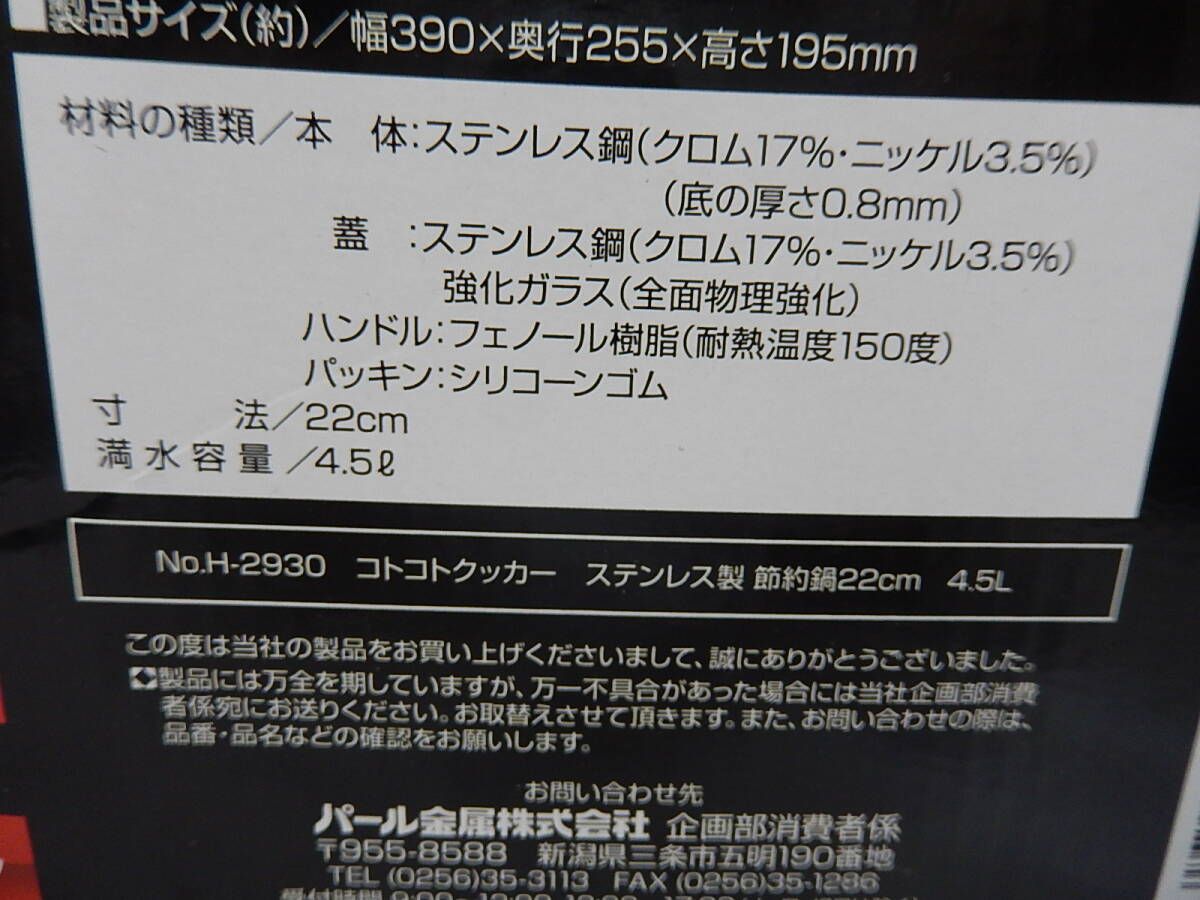 ※商品説明や画像ををよくごらん頂き、ご納得の上でのご入札をお願いいたします。 ■商品内容・状態 未使用 保管品 節約鍋 パール金属 ステンレス製 22cm 4.5L IH対応 未使用の保管品です。 商品箱には汚れ・スレなど傷みがあります。 商品は画像にある物が全てです。 (商品によっては一部欠品があるかも知れません。) 詳しくは画像にて、ご確認/ご判断ください。 一切ノークレームノーリターンでお願いします。 ※写真に撮りきれないキズ等あります。 気づかなかった点があるかも知れません。 ご容赦願います。 細かい事を気にされる方は入札をご遠慮下さい。 ノークレームノーリターンでお願いします。 ■出品物に関しての注意事項 ※中古品である事を御理解戴き入札を御願い致します。 その他不明な点は画像・メーカーHPより御確認・御判断を御願い致します ※ジャンク品および訳あり品と明記がある出品物に関しましては動作確認の取れていないもの、 故障しているがパーツ取りとして出品している商品になります。自己において 修理等できる方、もしくは『ジャンク・訳あり』商品を理解していただいている方のみの 御入札をお願い致します。 ※商品によりメーカー、販売元の保証期間が過ぎている商品がございます。 保証期間の過ぎている商品に関しましては、落札者様の自己責任において 御対応していただくよう御願い致します。 | ||||||||||||||||||||||||||||||||||||||||||||||||||||||||||||||||||||||||||||||||||||||||||||||||||||||||||||||||||||||