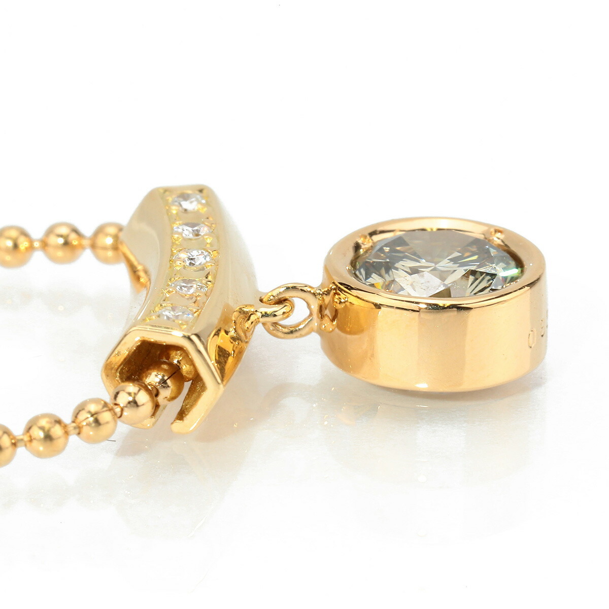 ダイヤモンドの中でも希少で、光源や見る角度等によって多様な色味が見える美しい、大粒なファンシーグレーグリーニッシュイエローダイヤモンドをトップに飾ったペンダントネックレス。揺れるたびに輝き胸元をエレガントに飾ってくれます。![]() |
