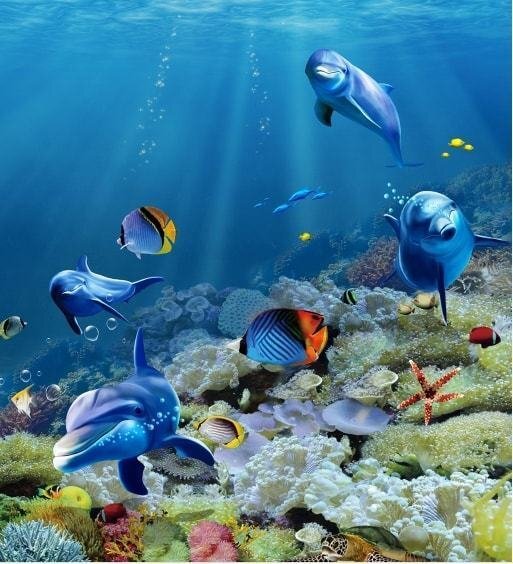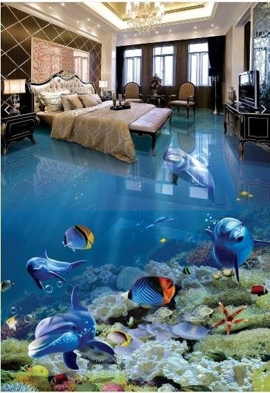 C590 巨大 3D フロアマット 1m*2m* 海 水族館 風景 景色 リフォーム リメイク 防音 断熱 滑り止めシート 床 壁 天井 はがせるシール