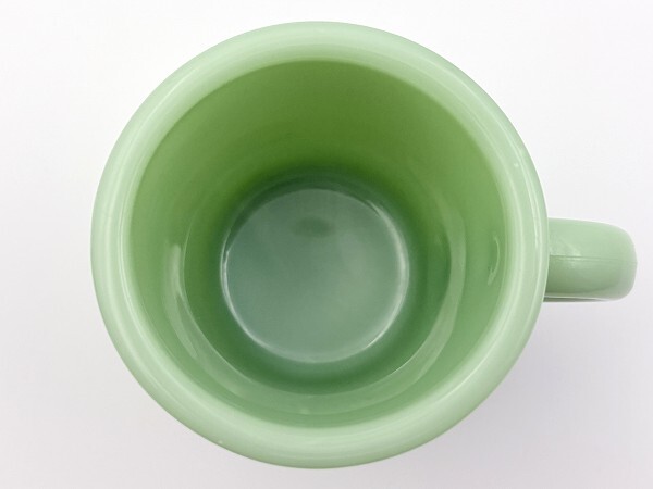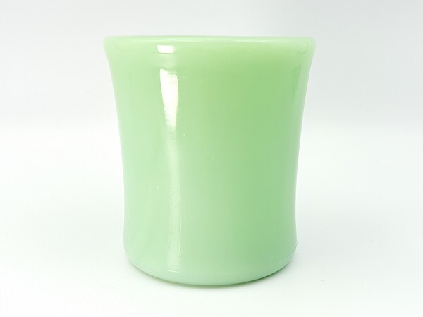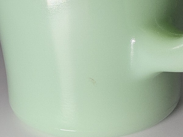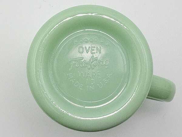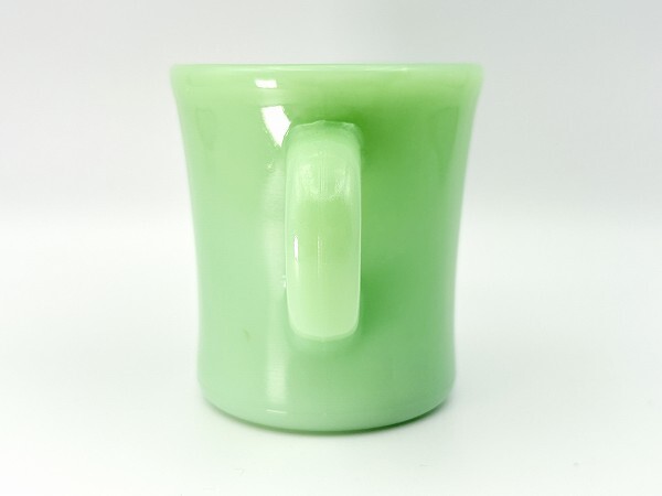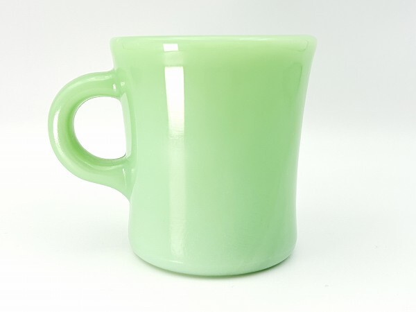 ■商品説明:ファイヤーキングのジェダイ・ヘビーマグです。 1950年代にアメリカのレストランやダイナー、協会、軍、ホテルなどで使用されていたレストランウェアシリーズ。 シリーズを代表するマグです。 業務用に作られただけあって頑丈で、ちょっとやそっとじゃ割れません! 分厚いミルクガラスは保温効果も抜群です。 どっしりとした重量感とぽってりと丸みを帯びたシルエットの絶妙なバランスが人気です。 大きさはエキストラヘビーマグよりひとまわり小さいサイズです。重量約340g、重すぎず、最も使い勝手のよいレストランウェアのひとつです。 ■コンディション:★★★★☆【エクセレント~レアミント】 割れ、欠け等ありません。 あまり使用感がなく、目立った傷みもありません。 全体的に良いツヤがある美品です。 側面に製造時よりのヘアライン(ヘコミライン)、気泡痕、ガラスのより がみられます。側面下部に金属痕、わずかなスレがみられます。 内側も外側もツルツルで、非常に良いツヤがあります♪♪♪ ■サイズ:横幅10.5cm、直径8.2cm、高さ8.5cm ■刻印:OVEN Fire-King WARE MADE IN USA |