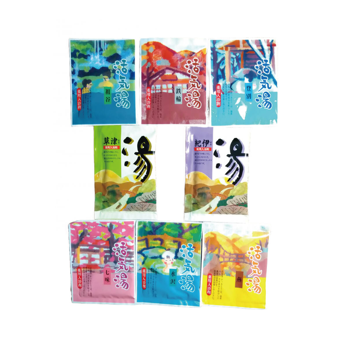 定番のゆずやラベンダーの香り、バラやハーブの香り、草津や別府、有馬などの有名温泉地名の入浴剤が楽しめます。