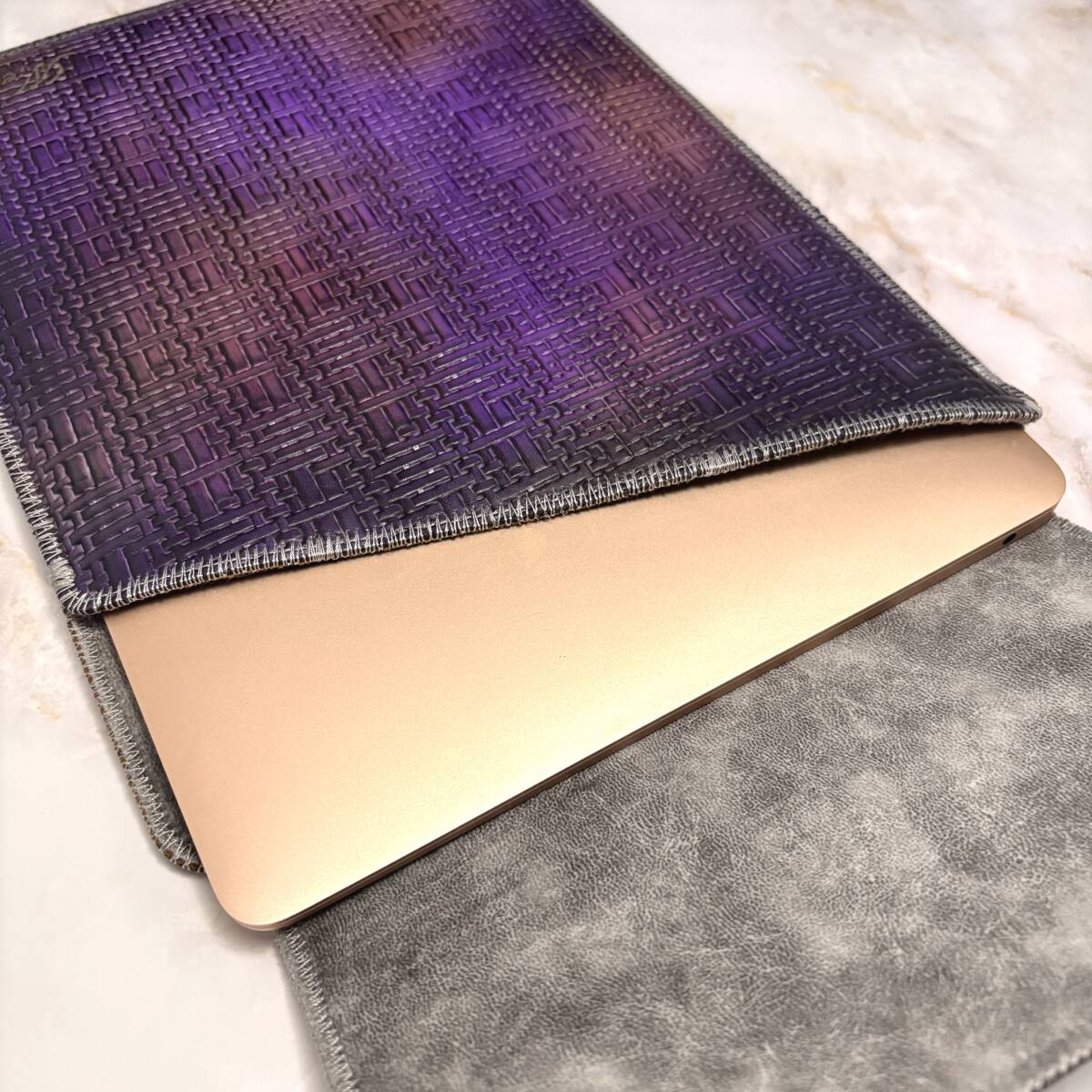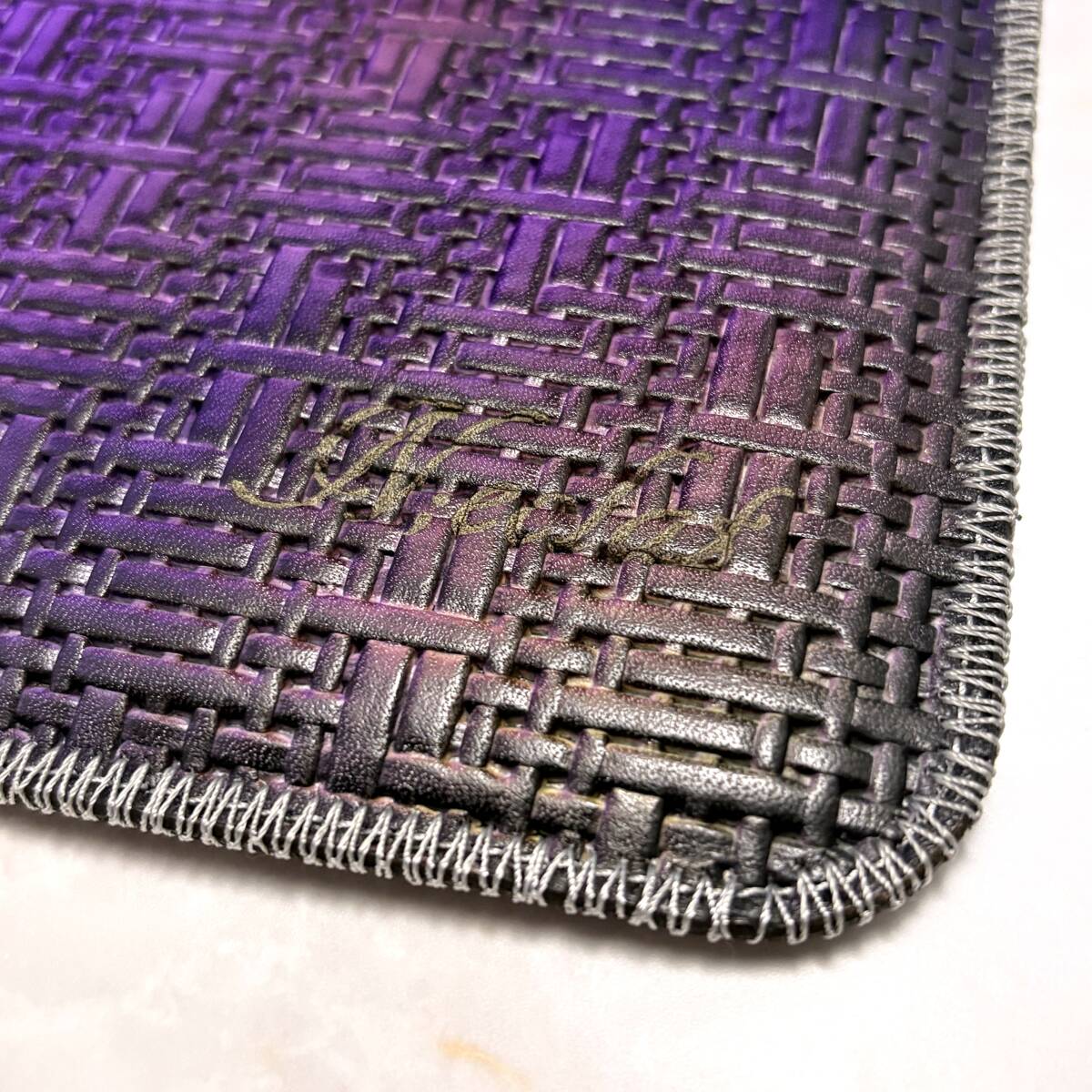 エヌエクレのパティーヌipad・パソコンケースになります。 こちらは職人が一つ一つパティーヌを施す事がメインのスペイン製のブランド「エル エクレ」の別ラインになりまして、デザイナー自らが全てのパティーヌをハンドメイドで施している1点物のオリジナルラインになります。近年ベルルッティを筆頭にパティーヌの美しさが注目され、現在では非常に高価で希少な物という位置付けになっています。まだ市場には全く出回っていないブランドですので、他の方と差を付けたい方には是非お勧めです。 こちらはオリジナルのイントレチャート型押しに加え、パープルパティーヌをベースにブラックやイエローが入ったカラーリングが非常に美しいパソコンケースです。裏地にもスエード調のオシャレなフェルト生地が使われていたり、ステッチにもデザイン性の高い独自の方法を取り入れていたりと細部にまでこだわりぬいています。さらには画像⑨の様に蓋部分を広げてパソコンを置くとマウスパットにもなり、機能性はもちろん周りの注目を大きく引くアイテムです。重さも軽く、日常の持ち運びで鞄にインするにはもちろん、旅行時のスーツケース内でもクッション変わりの役目を果たしてくれます。完全な1点物ですので、目に留まった方には是非お勧めです。付属品は無く現品のみとなります。 【他にもエヌエクレの商品を多数出品しておりますので、よろしければご覧下さいませ。】 |