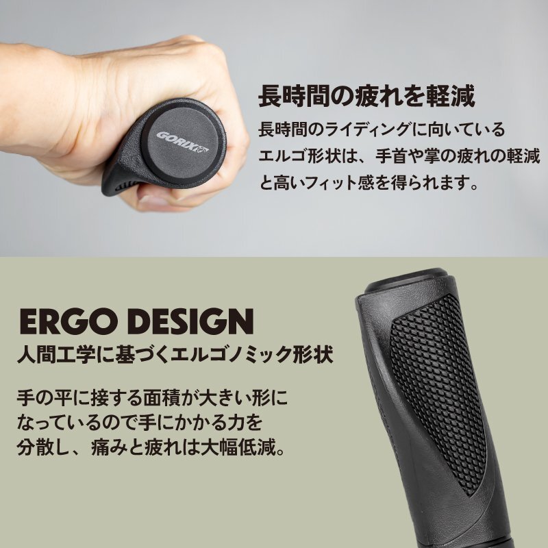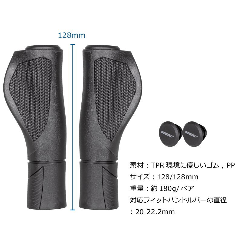 GORIX ゴリックス 自転車グリップ エルゴグリップ 128mm 衝撃吸収 ノンスリップ グリップ力 ハンドルグリップ グリップ (GWR 1971)