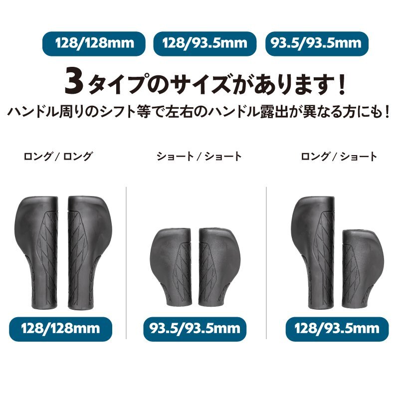 GORIX ゴリックス 自転車グリップ エルゴグリップ ロックオン固定 クロスバイク MTB GXR RELEVO 128mm/93.5mm ロングショートタイプ