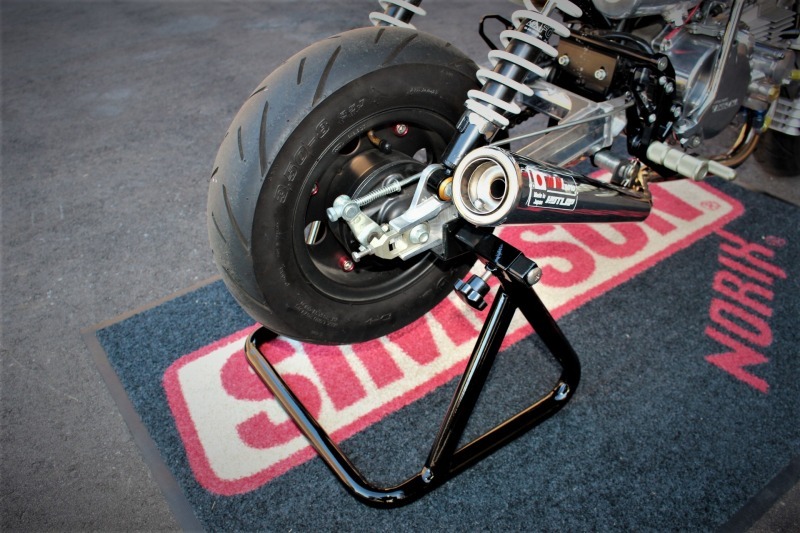 ミニバイクメンテナンスには欠かせないリア用ミニタイプ(ローラー無タイプ)です。