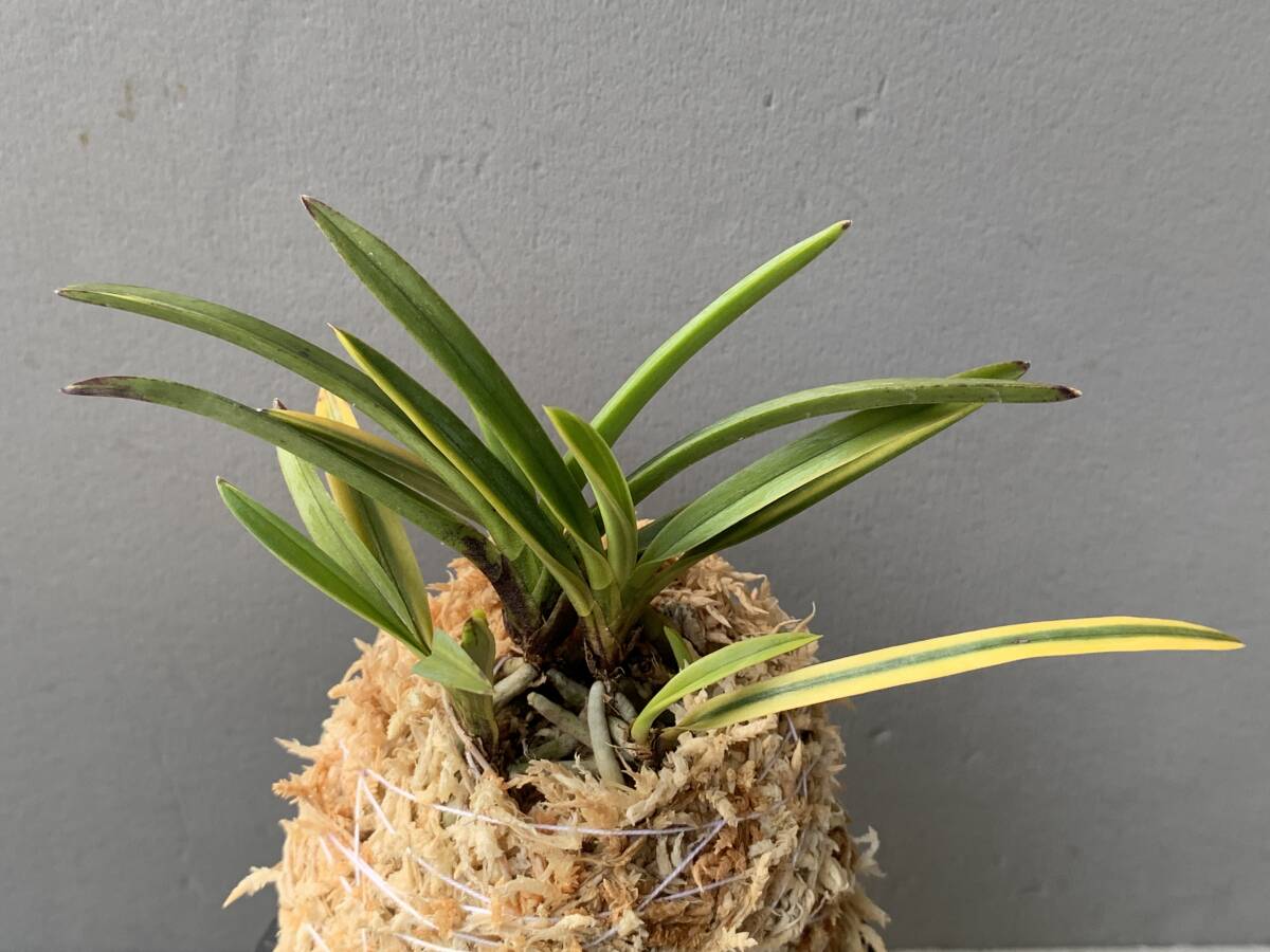 島根産の山採り風蘭・仁摩錦・3本寄せ植え+小仔1・現品限りです。2021年専門店より入手しました増殖品になります。来歴はラベルに記載しています。葉長約6~7㎝・葉幅約0,8cmです。発送はクロネコヤマトの送料着払いで鉢抜きでお送りします。画像で判断していただきノークレームでお願いします。