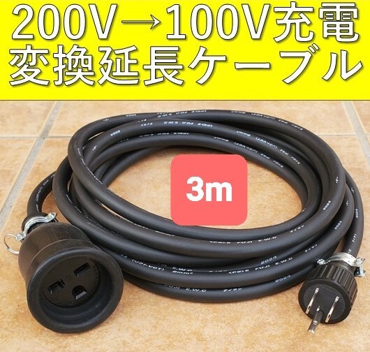 充電変換延長ケーブル 200V→100V 3m 3メートルプリウス RAV4 PHV リーフ サクラ マツダ | |||