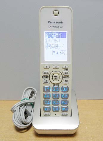 子機本体、充電台、充電池(社外品新品)。使用に伴う小キズなどございます。操作面に日焼けあり。親機に接続して通話確認。全てのボタンの反応を確かめましたが全ての機能を試したわけではありません。中古経年品につき現状渡し。落札後のキャンセルやクレームはお断りします。