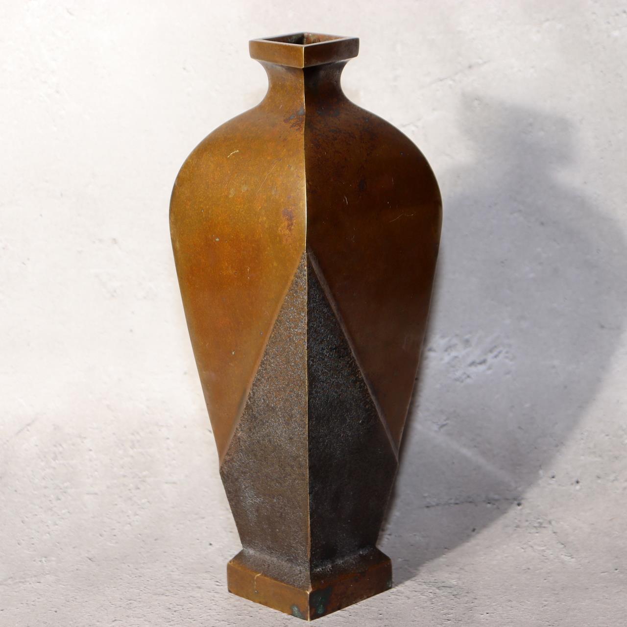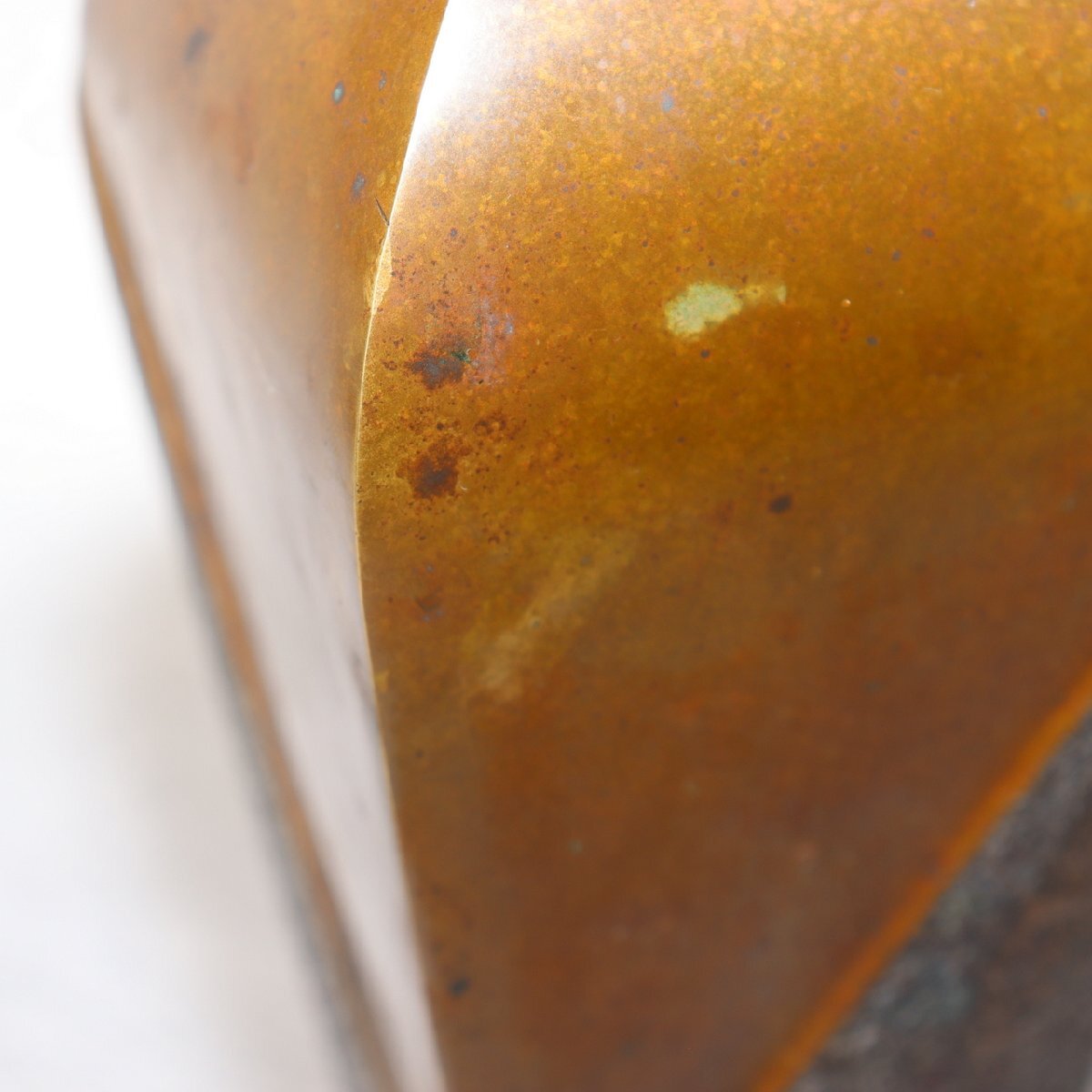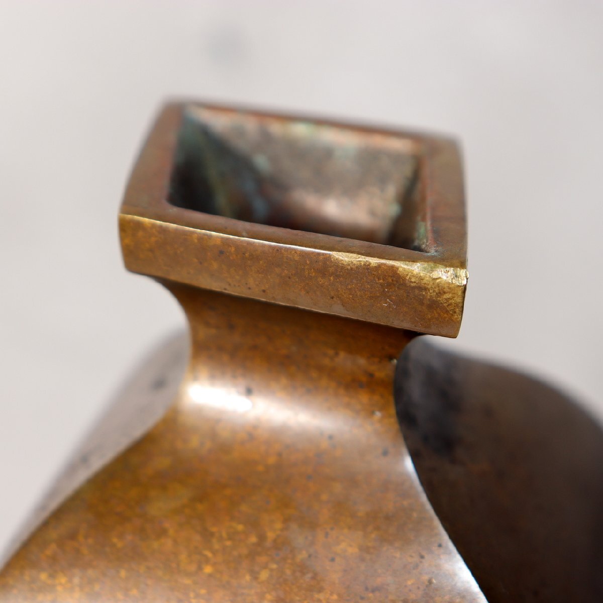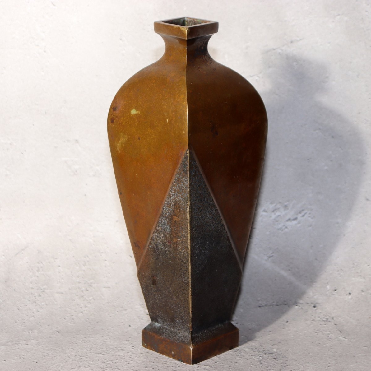 こちらは20世紀初頭、アールデコ期のデザインを取り入れたブロンズ製の花瓶です。 直線的で力強い幾何学模様が特徴で、1920~30年代のモダンデザインを象徴する造形美を備えています。 滑らかな金属面と時代を経た古色のコントラストが美しく、アメリカ製ブロンズ工芸の魅力を感じられる一品です。 【サイズ】 高さ:約21.5cm 口径:約4×5.5cm 幅:約7cm 重量:約1085g 【状態】 経年による小傷・擦れ・くすみ・部分的な酸化が見られます。 アンティークとして自然な風合いを保っています。 詳細は写真をご確認ください。 ぜひこの機会にご検討ください。 ![]() ![]() ![]() ![]() ![]() ![]() |