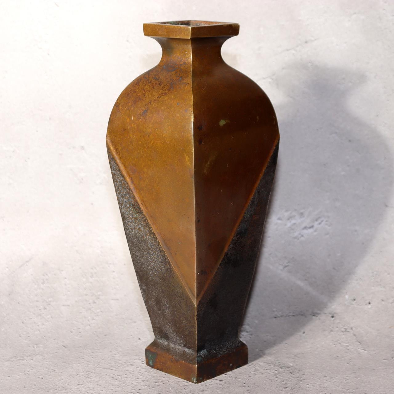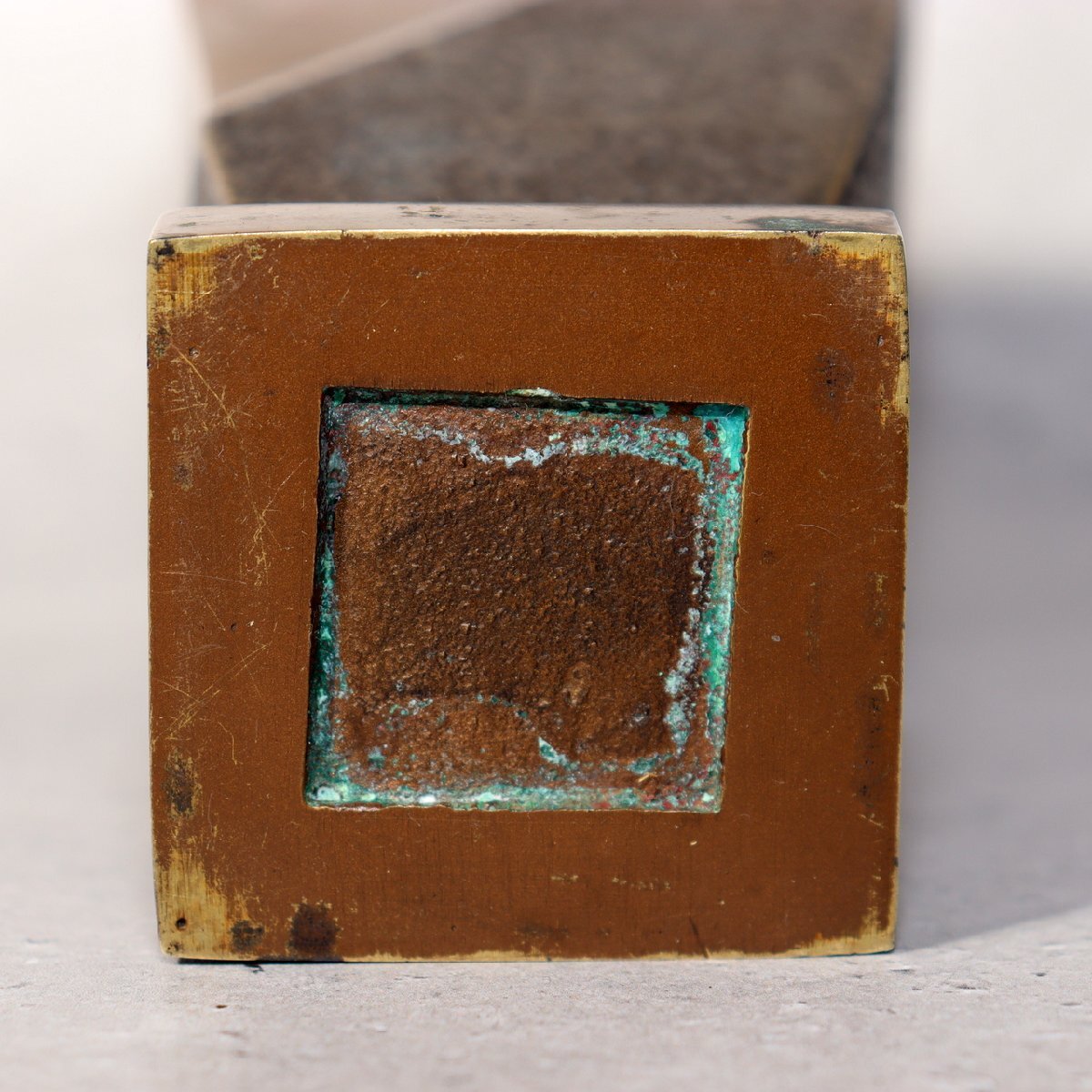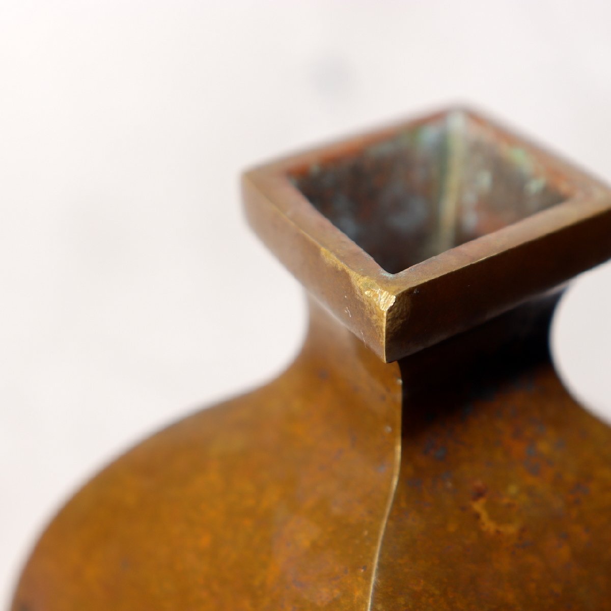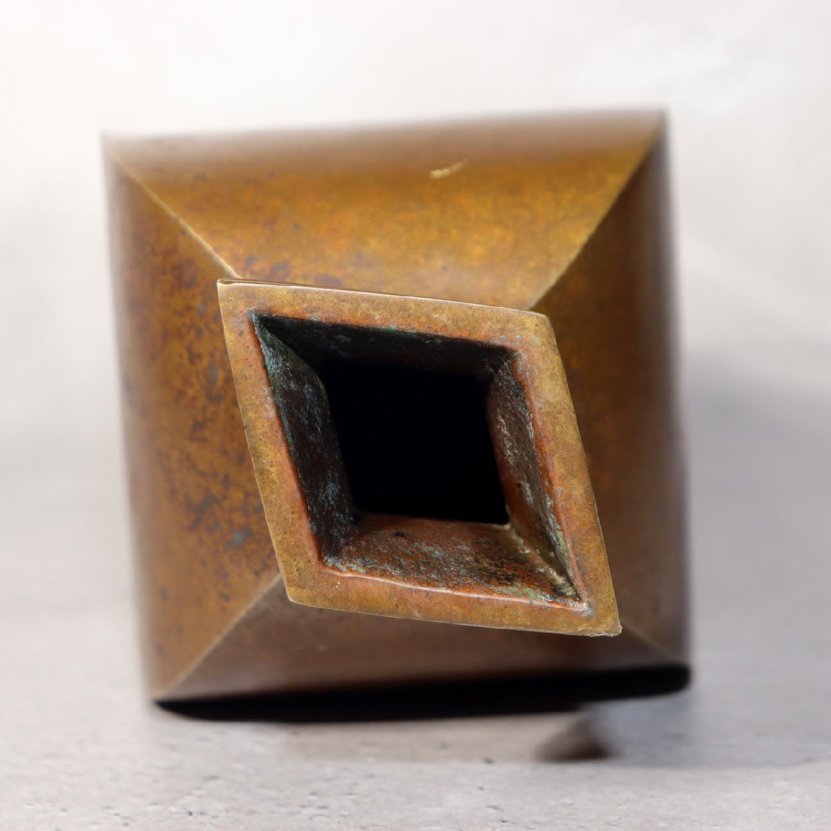 こちらは20世紀初頭、アールデコ期のデザインを取り入れたブロンズ製の花瓶です。 直線的で力強い幾何学模様が特徴で、1920~30年代のモダンデザインを象徴する造形美を備えています。 滑らかな金属面と時代を経た古色のコントラストが美しく、アメリカ製ブロンズ工芸の魅力を感じられる一品です。 【サイズ】 高さ:約21.5cm 口径:約4×5.5cm 幅:約7cm 重量:約1085g 【状態】 経年による小傷・擦れ・くすみ・部分的な酸化が見られます。 アンティークとして自然な風合いを保っています。 詳細は写真をご確認ください。 ぜひこの機会にご検討ください。 ![]() ![]() ![]() ![]() ![]() ![]() |