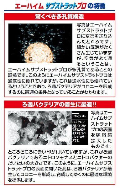 ・適当な直径の孔による多孔質なのでろ過バクテリアのコロニー形成に最適の条件を備えています。