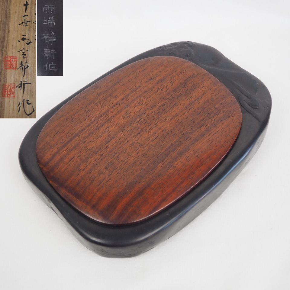 | 商品説明 | 高さ約 3.2cm 幅約 20×14cm 重さ 1791g 雨宮静軒 明治25年 2月生まれ 明治42年 東京美術学校付属工芸講習所修了 竹内栖鳳に図案を学ぶ 大正3年 東京大正博覧会 銅牌 大正5年 台湾勧業共進会 銅牌 大正11年 平和博覧会 金賞 大正14年 熊本市国産共進会 二等賞 昭和6年より 帝固美術院展に出品 入選4回 昭和10~12年 朝鮮美術展(工芸部門)審査員 昭和12年 文部省美術院展に出品 入選6回 昭和12年 文部省芸術保存資格者となる 昭和23~31年 日本美術展覧会に出品 8回(委嘱出品3回) 昭和23年特選 昭和32~47年 日本伝統工芸展に出品 日本工芸会正会員 昭和46~47年 日本伝統工芸会鑑査員 昭和48年 永眠 ご覧のように、硯名人十一代雨宮静軒の富士山彫り硯です。本物保証です。前帝国美術院長正木直彦賛辞もあります。状態はとても良好です、詳しくは写真でご確認ください。 |