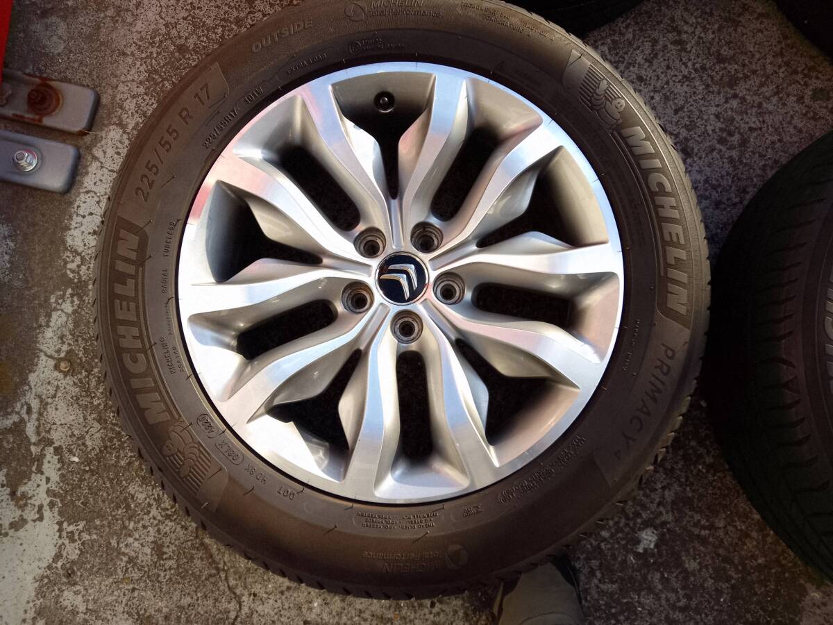 即決!シトロエンC5 純正アルミホイール タイヤ ミシュラン MICHELIN PRIMACY4 4本セット 。ホイール 7Jx17+32 108-5H 1本スポークに小傷がありますが比較的綺麗です。タイヤ 225/55R17 2020年製造 山は4mm程度写真を参考にしてください。中古品ですのでノンクレームでお願いします。佐川運輸の着払いで発送せていただきます。お引き取り可能です。