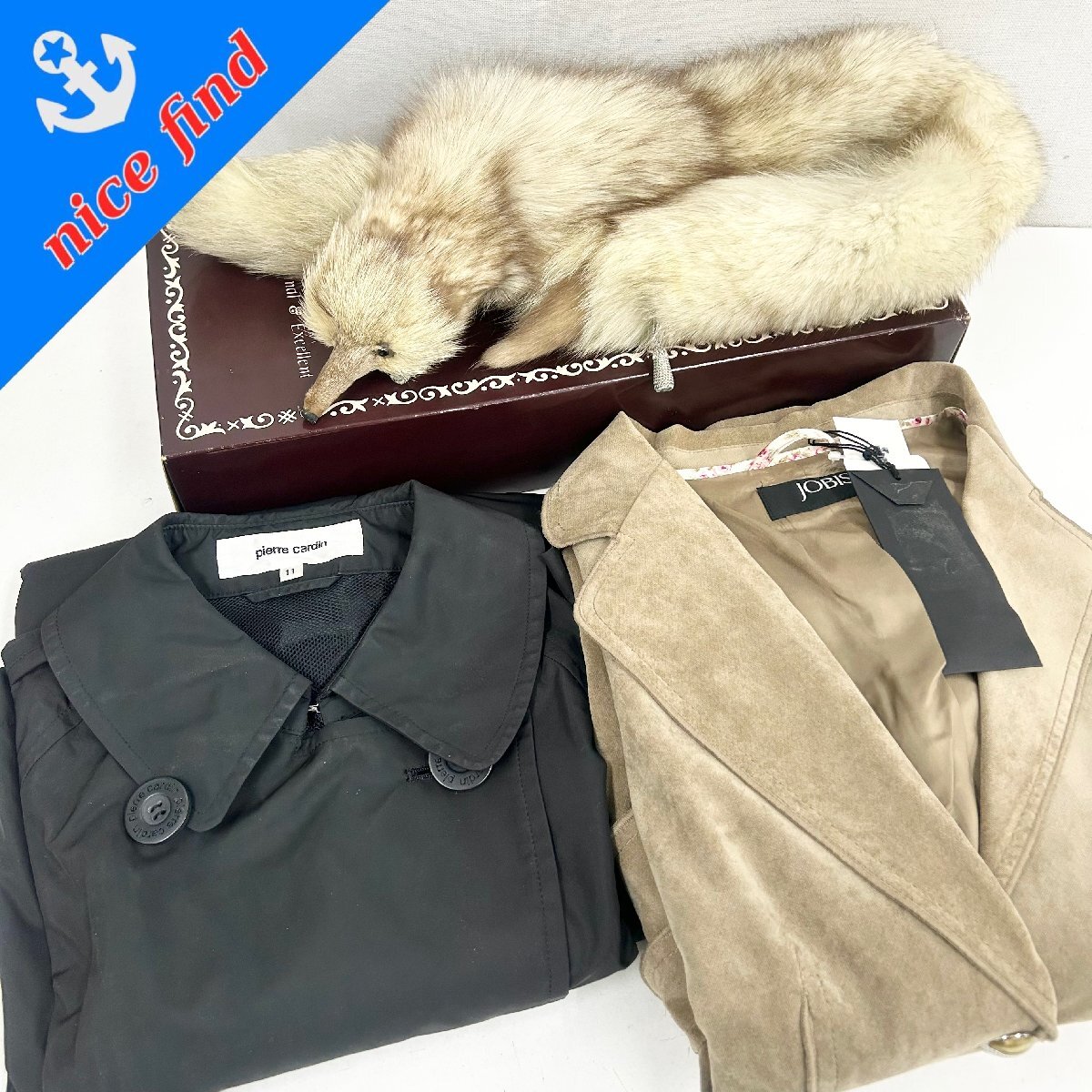 ◆ブランド服まとめ売り3着セット◆ヌーベル ピエールカルダン ヨビス 青狐 襟巻き 510-390-HS ステンカラーコート ジャケット ジャンク