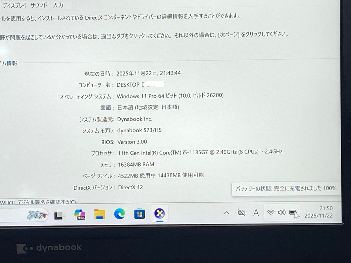 | TOSHIBA DYNABOOK S73/HS i5第11世代 ノートPC Core i5-1135G7 ノートパソコン メモリ16GB SSD 256GBカメラ13.3フルHD LAPTOP 管理番号:27274 | |