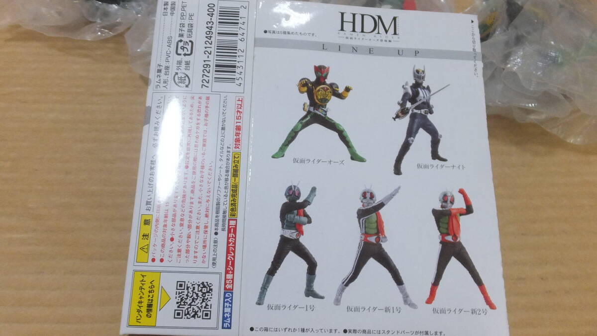 BANDAI 食玩HDM ―仮面ライダーオーズ 登場編― 5体コンプリート の未使用品です。フルコンプリート+おまけダブりで仮面ライダー新2号が付きます。元箱は一個分をたたんで同封します。商品は画像にあるものが全てとなり、元袋から出しておりません。全体的に目立つ様な傷や汚れ等もほぼほぼ無いと思います。基本的には商品の性格上ジャンク品扱いにて部品取り・研究用・コレクション・オブジェ等の使用でノークレーム・ノーリターンにてお願いいたします。